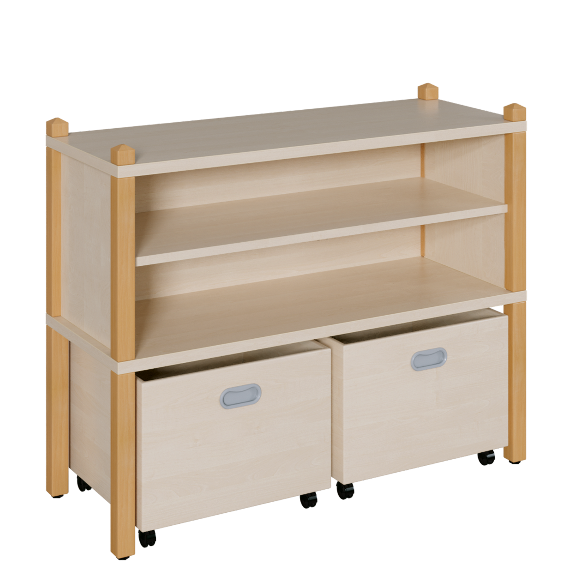 B/H/T: 106x80x40 cm, 2 große Regalfächer, 2 Rollkästen in hoher Sockelnische