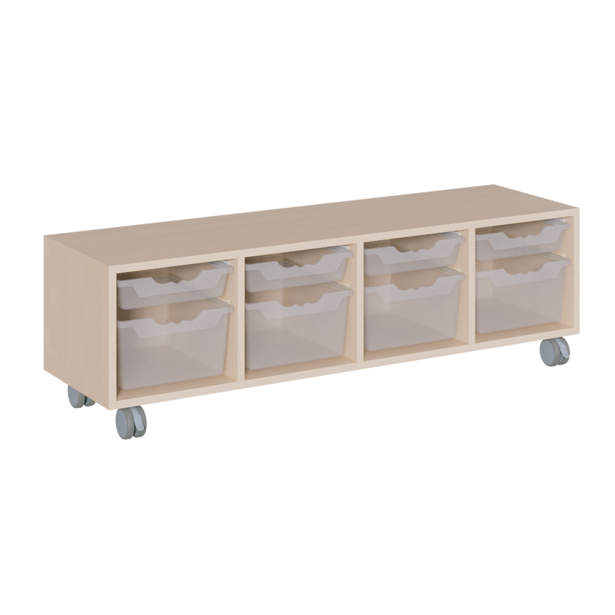 B/H/T: 139x42,5x40 cm, in 4 Reihen 4 flache und 4 hohe ErgoTray-Boxen