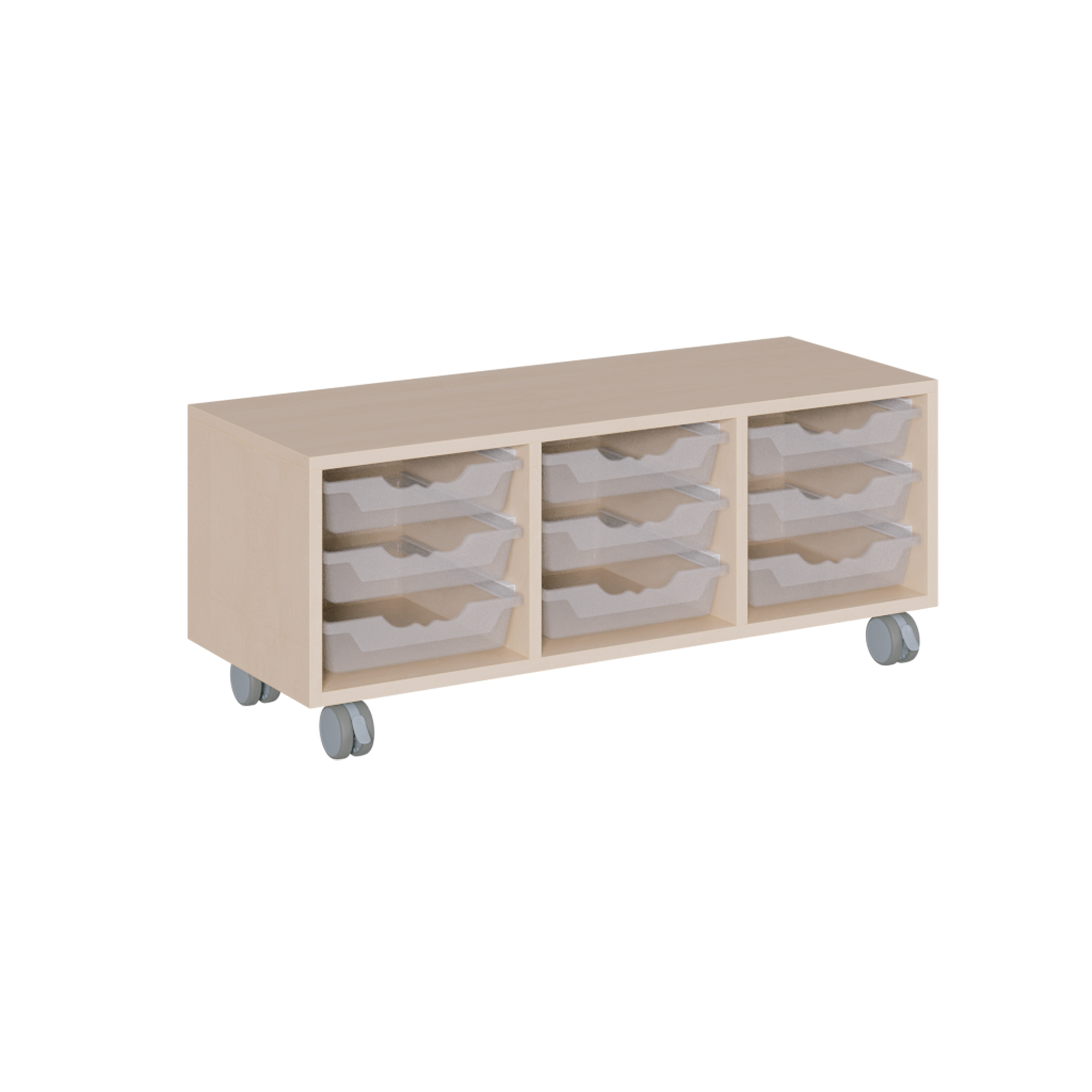 B/H/T: 105x42,5x40 cm, in 3 Reihen 9 flache ErgoTray-Boxen