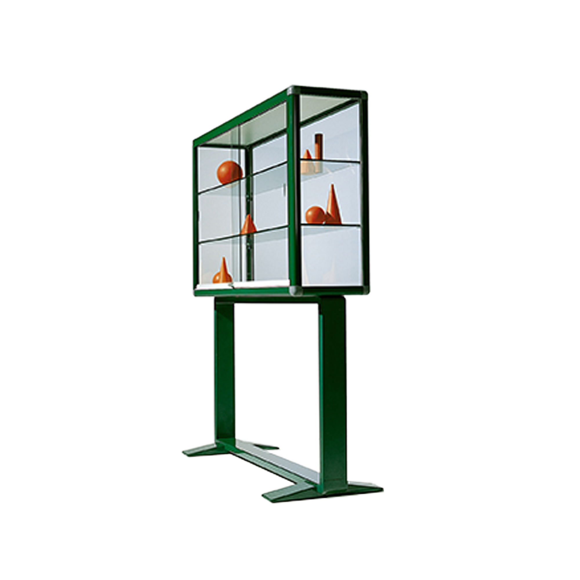 Ausstellungsvitrinen auf zwei Beinen. Futuristisches Design, höchste Standfestigkeit und Sicherheit für die Ausstellungsobjekte – das sind die Vorteile der Vitrinenserie WV1. Alle Scheiben und Schiebetüren sind aus Sicherheitsglas. Alle Modelle haben zwei höhenverstellbare Dickglasböden. Massive Druckzylindersicherheitsschlösser sichern die Exponate. Die Standardfarbe für Alu-Vitrinen ist silber eloxiert. Gegen Mehrpreis können Sie außerdem unter weiteren RAL-Farben wählen.