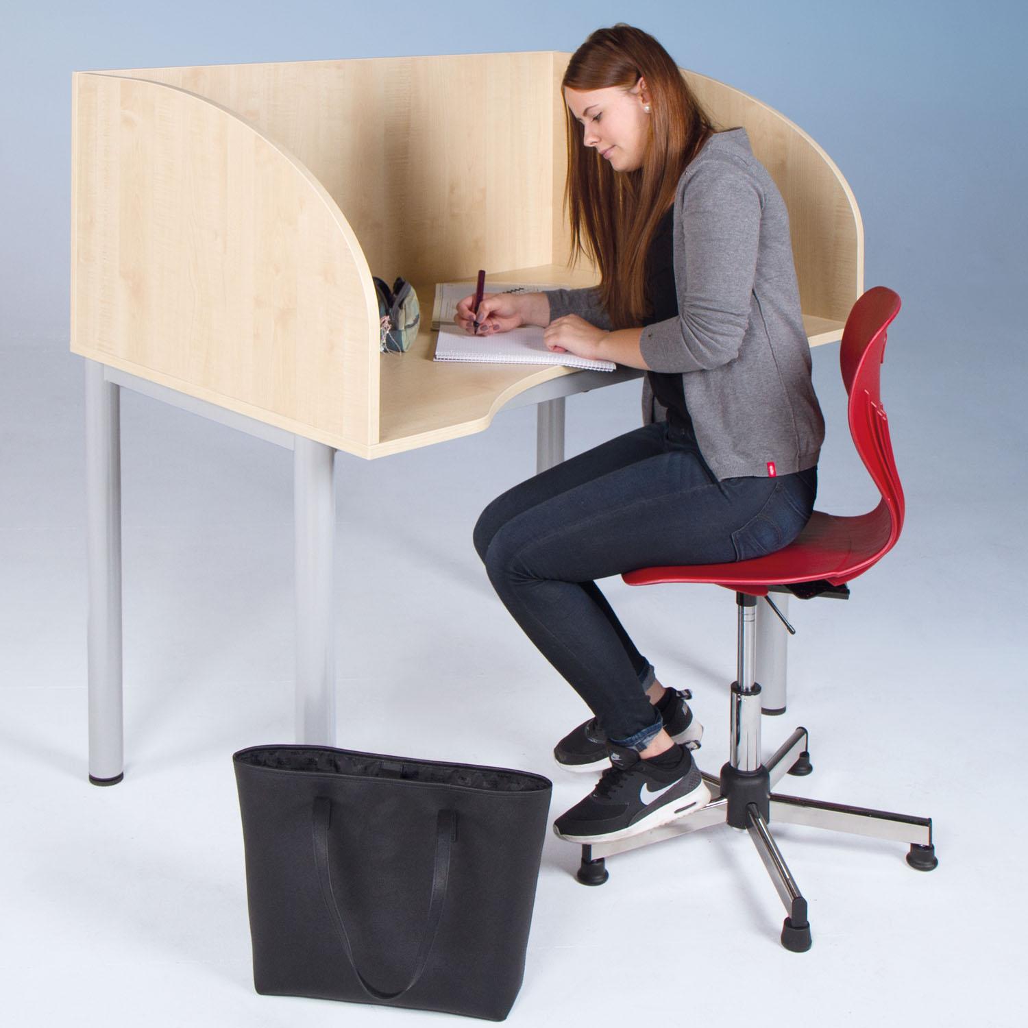 Die Einsatzmöglichkeiten für diesen Tisch sind vielfältig. Überall, wo in Ruhe gearbeitet oder recherchiert werden soll, ist er goldrichtig. Beispielsweise in Räumen zur Freiarbeit, in Bibliotheken, Lehrerzimmern oder im Foyer. Der Tisch ist in mehreren Größen erhältlich, wahlweise mit oder ohne Blechkabelkanal.