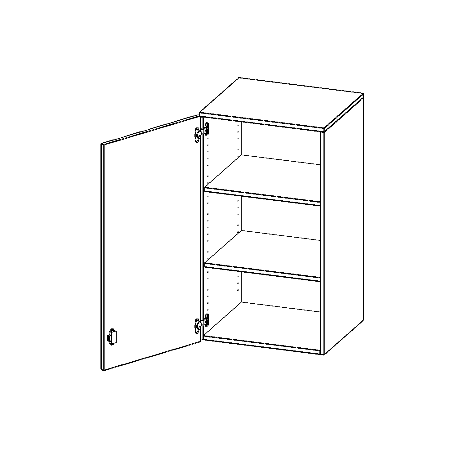 Alle Aufsatzschränke werden aus melaminharzbeschichteter E1-Feinspanplatte gefertigt, die FSC zertifiziert und formaldehydfrei sind. Als Kanten verwenden wir besonders robuste 2 mm starke ABS Kanten, die unter hoher Temperatur fest verleimt werden. Bitte wählen Sie Ihr Wunschdekor aus unserer Dekorpalette aus. Die Einlegeböden sind im Raster von 32 mm verstellbar. Unsere hochwertigen Bodenträger verfügen über einen "Ausziehstop", so wird verhindert, dass Böden mit Inhalt darauf aus dem Regal oder Schrank rutschen können. Die Türen lassen sich dank 270° offnender Scharniere an den Korpus anlegen. Sie sind mit einem Schloss verschließbar. An den Türen befindet sich eine Staublippe.