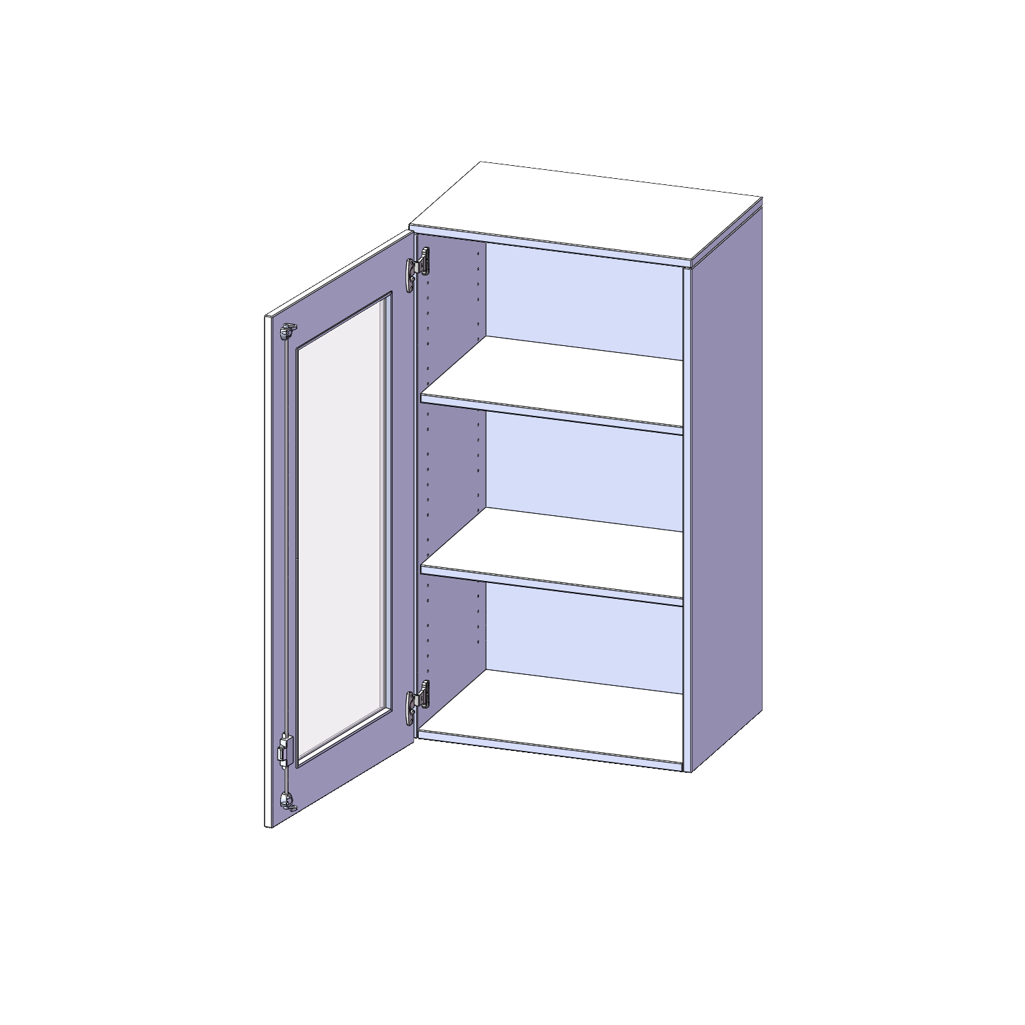 Die Türen öffnen 270°, sind abschließbar und mit einem Glasausschnitt versehen. Die Glaseinlage besteht aus Sicherheitsgründen aus Acrylglas, ist von innen eingesetzt und auf der Tür von innen verschraubt. So sehen Sie schnell, was im Schrank untergebracht ist. Besonders praktisch für Sammlungen.