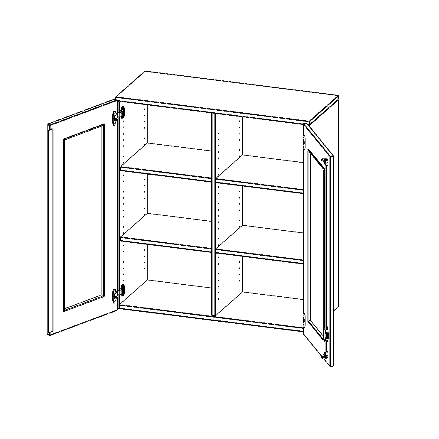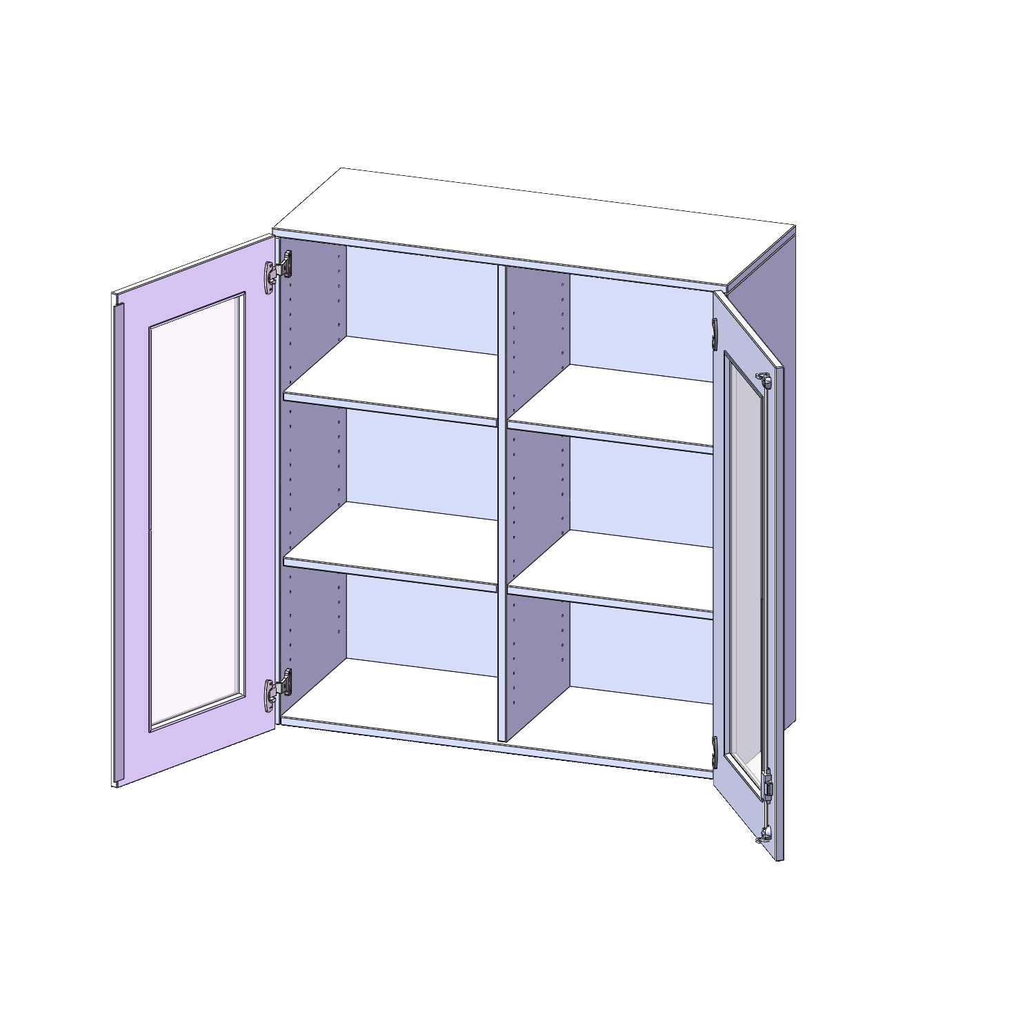 Die Türen öffnen 270°, sind abschließbar und mit einem Glasausschnitt versehen. Die Glaseinlage besteht aus Sicherheitsgründen aus Acrylglas, ist von innen eingesetzt und auf der Tür von innen verschraubt. So sehen Sie schnell, was im Schrank untergebracht ist. Besonders praktisch für Sammlungen.