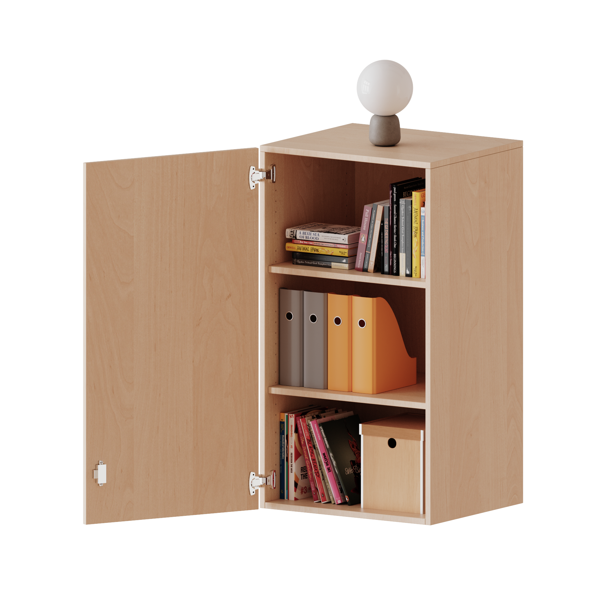 Alle Aufsatzschränke werden aus melaminharzbeschichteter E1-Feinspanplatte gefertigt, die FSC zertifiziert und formaldehydfrei sind. Als Kanten verwenden wir besonders robuste 2 mm starke ABS Kanten, die unter hoher Temperatur fest verleimt werden. Bitte wählen Sie Ihr Wunschdekor aus unserer Dekorpalette aus. Die Einlegeböden sind im Raster von 32 mm verstellbar. Unsere hochwertigen Bodenträger verfügen über einen "Ausziehstop", so wird verhindert, dass Böden mit Inhalt darauf aus dem Regal oder Schrank rutschen können. Die Türen lassen sich dank 270° offnender Scharniere an den Korpus anlegen. Sie sind mit einem Schloss verschließbar. An den Türen befindet sich eine Staublippe.