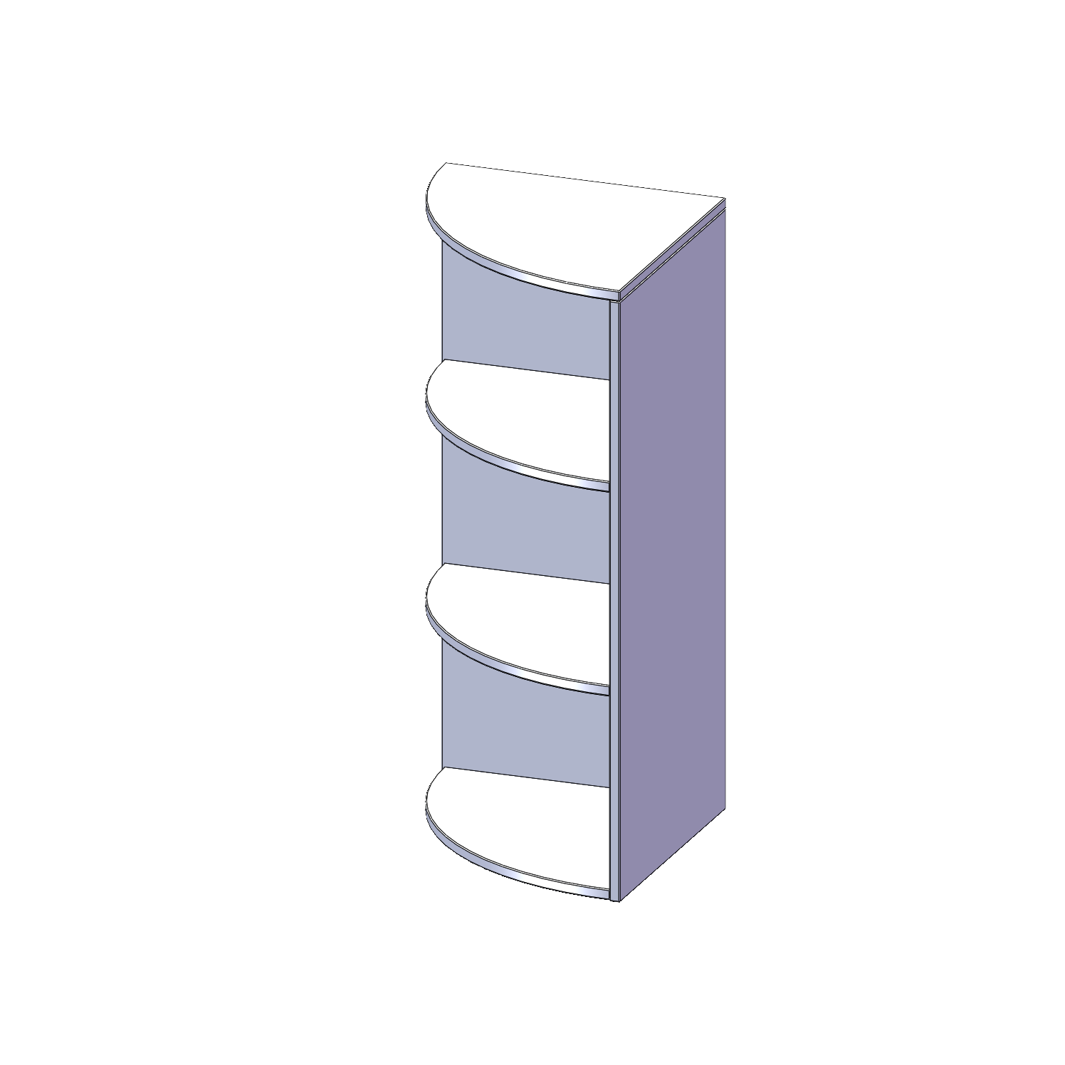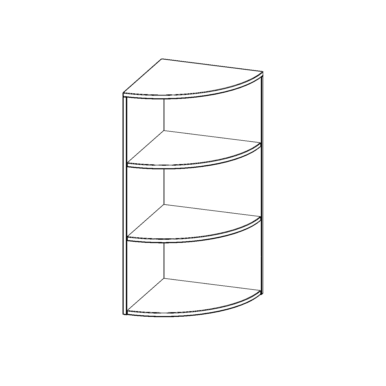 Die evo180 Außeneckregale in Viertelkreisform in verschiedenen Höhen und Tiefen sind ein ganz besonderer Bestandteil unseres evo180 Schrankwandprogrammes. Sie helfen dabei, Ihnen eine Schrankwand im wahrsten Sinne des Wortes "um die Ecke zu bringen". Die Außenecken führen die Schrankwand um nach innen in den Raum hineinragende Ecken fort. Mit den Ausatzegalen nutzen Sie die Raumhöhe optimal aus. Die Rückwand ist als Sichtrückwand ausgeführt.