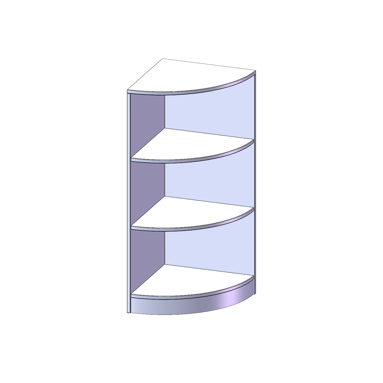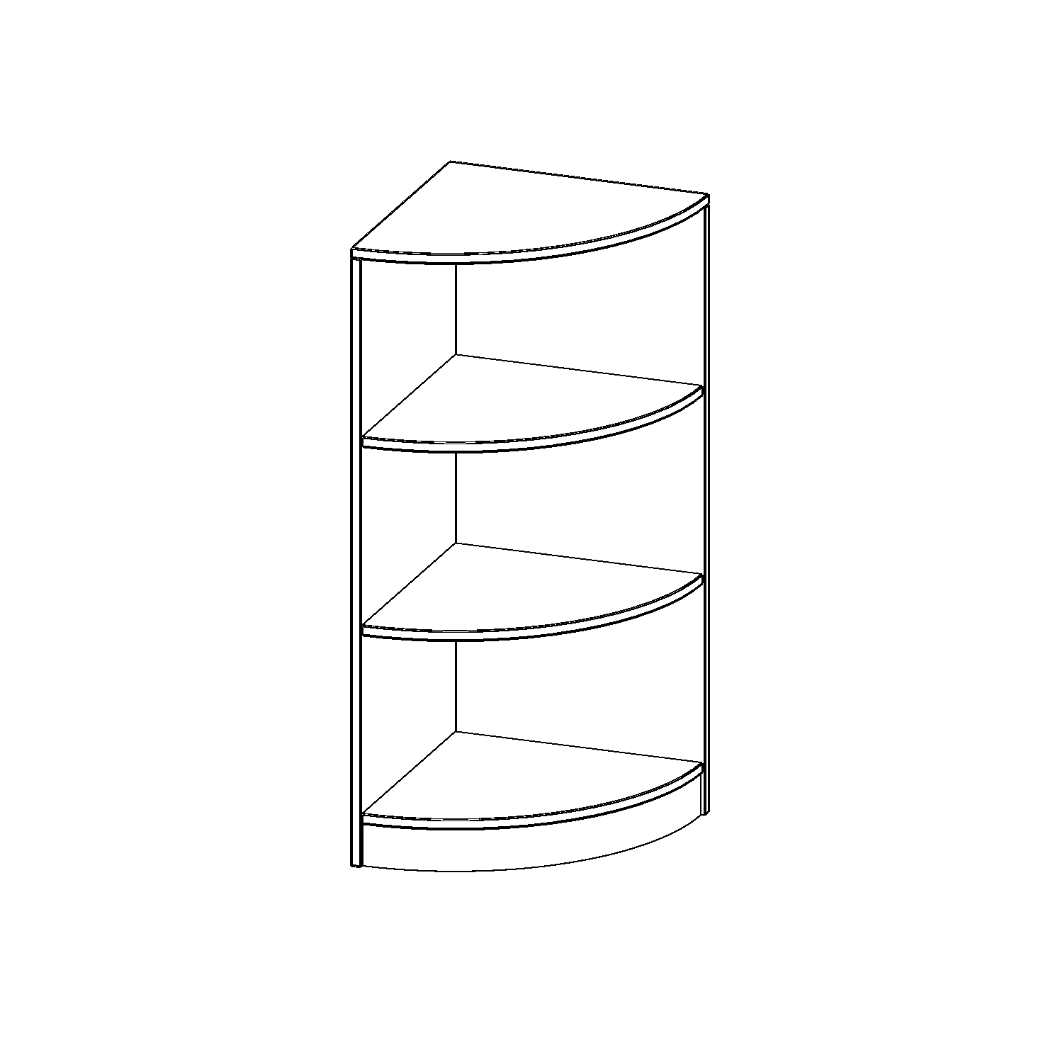 Die evo180 Außeneckregale in Viertelkreisform in verschiedenen Höhen und Tiefen sind ein ganz besonderer Bestandteil unseres evo180 Schrankwandprogrammes. Sie helfen dabei, Ihnen eine Schrankwand im wahrsten Sinne des Wortes "um die Ecke zu bringen". Die Außenecken führen die Schrankwand um nach innen in den Raum hineinragende Ecken fort. Die Rückwand ist als Sichtrückwand ausgeführt.
