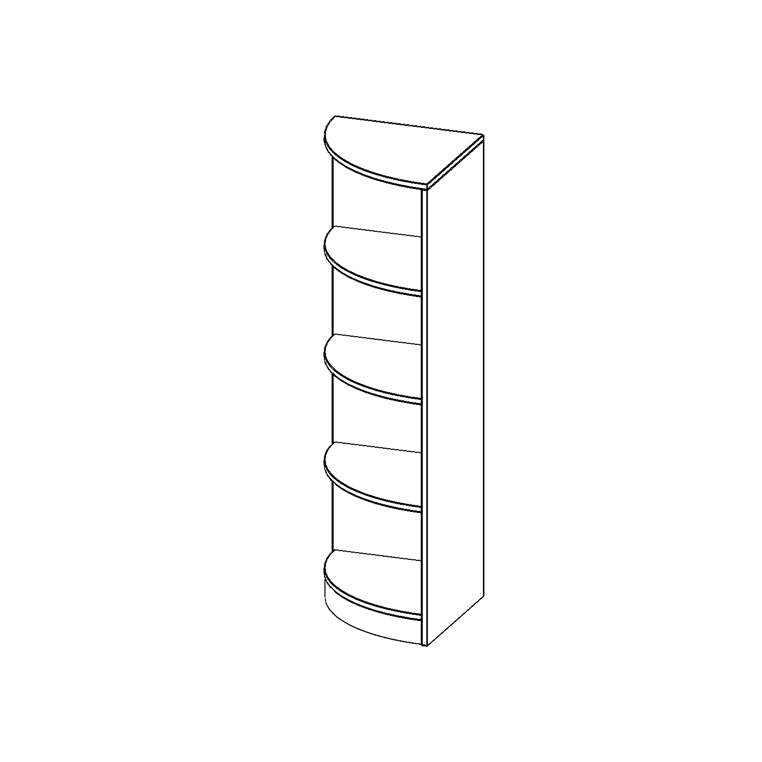 Die evo180 Außeneckregale in Viertelkreisform in verschiedenen Höhen und Tiefen sind ein ganz besonderer Bestandteil unseres evo180 Schrankwandprogrammes. Sie helfen dabei, Ihnen eine Schrankwand im wahrsten Sinne des Wortes "um die Ecke zu bringen". Die Außenecken führen die Schrankwand um nach innen in den Raum hineinragende Ecken fort. Die Rückwand ist als Sichtrückwand ausgeführt.