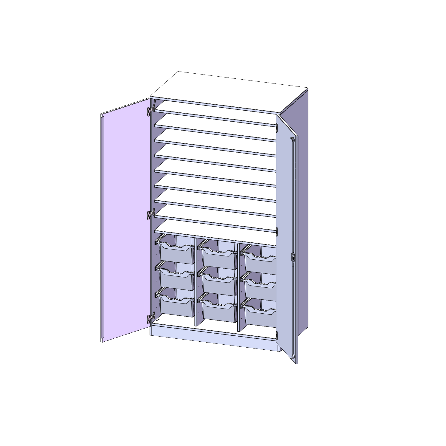 B/H: 104,5x190 cm, mit Sockel (81 mm), 2-türiger Schrank mit 9 hohen ErgoTray Boxen