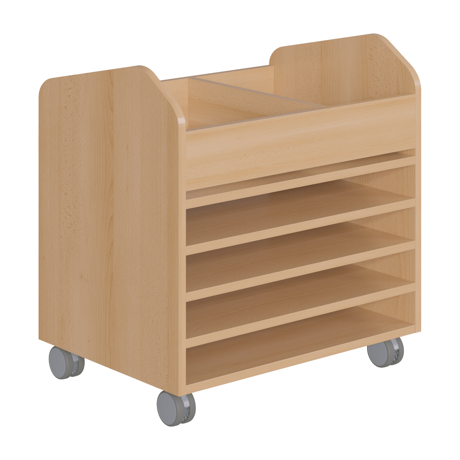 Kreativwagen & Bastelwagen MW1-26 mit 2 Fächern im oberen Ablagebereich. Unten 4 Papierfächer bis DIN A2.