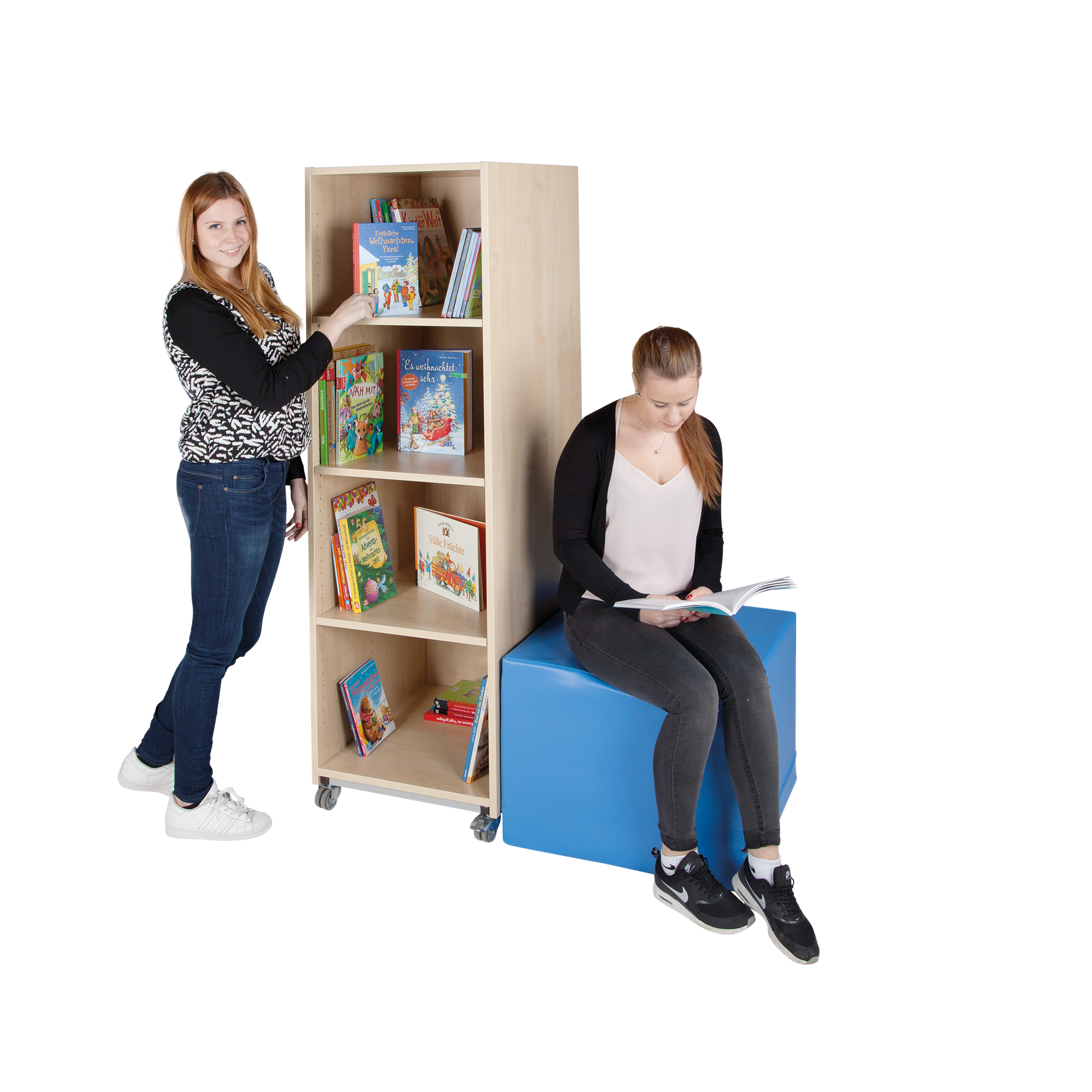 Unser Bücher- & Ordnerturm ist doppelseitig nutzbar und kann flexibel eingesetzt werden für Ihre Bücherei, Bibliothek, Arbeitsecke, Lehrerzimmer, Sekreteriat, Aula und vieles mehr. Der Bücherturm verfügt über drei verstellbare Einlegeböden pro Seite, d.h. insgesamt 6 und kann frei im Raum aufgestellt werden. Da Bücher und Ordner sehr schwer sein können, stehen unsere Büchertürme auf einem fest verschweißten Stahlgestell mit vier Schwerlastdoppelrollen, davon sind zwei feststellbar. Der Bücherturm steht auf einem verschweißten Stahlgestell (RAL 7035 lichtgrau), so bleibt er auch voll beladen mobil.