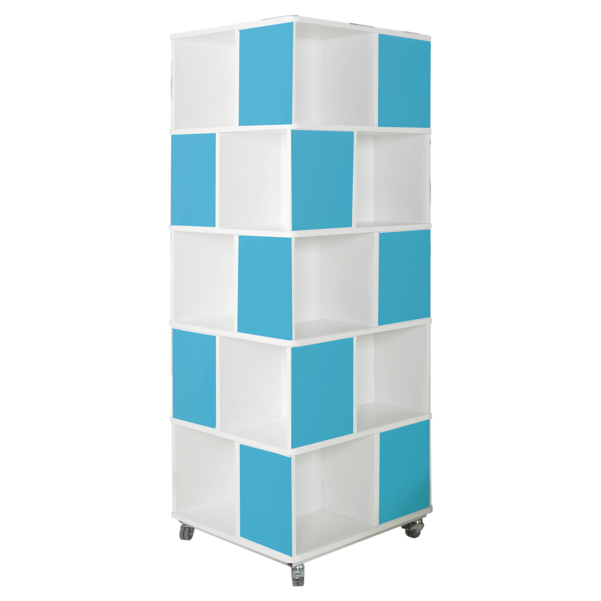 Unsere Büchertürme mit 2 bis 5 Ebenen und von 8 bis 20 offenen Fächern in Ordnerhöhe bieten genug Platz um all ihre Bücher aufzubewahren. Dank der 4 stabilen Schwerlast- Doppelrollen ist der Bücherturm mobil einsetzbar. Korpus und Blenden können farbgleich in 1 Dekor aus unserer Dekorpalette gestaltet werden.