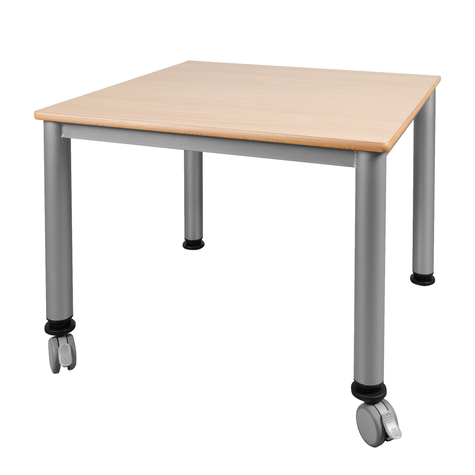 Alle Tische stehen auf Rundrohrfüßen die einen Durchmesser von 60 mm haben. Das verleiht den Tischen Stabilität. Sie möchten die Tische gerne öfter frei bewegen können? Kein Problem. Hier können Sie sich einfach für die fahrbare Variante entscheiden und einen Tisch mit zwei Rollen erwerben. Beide Rollen sind feststellbar und somit ist eine gute Standfestigkeit des Tischs gewährt.