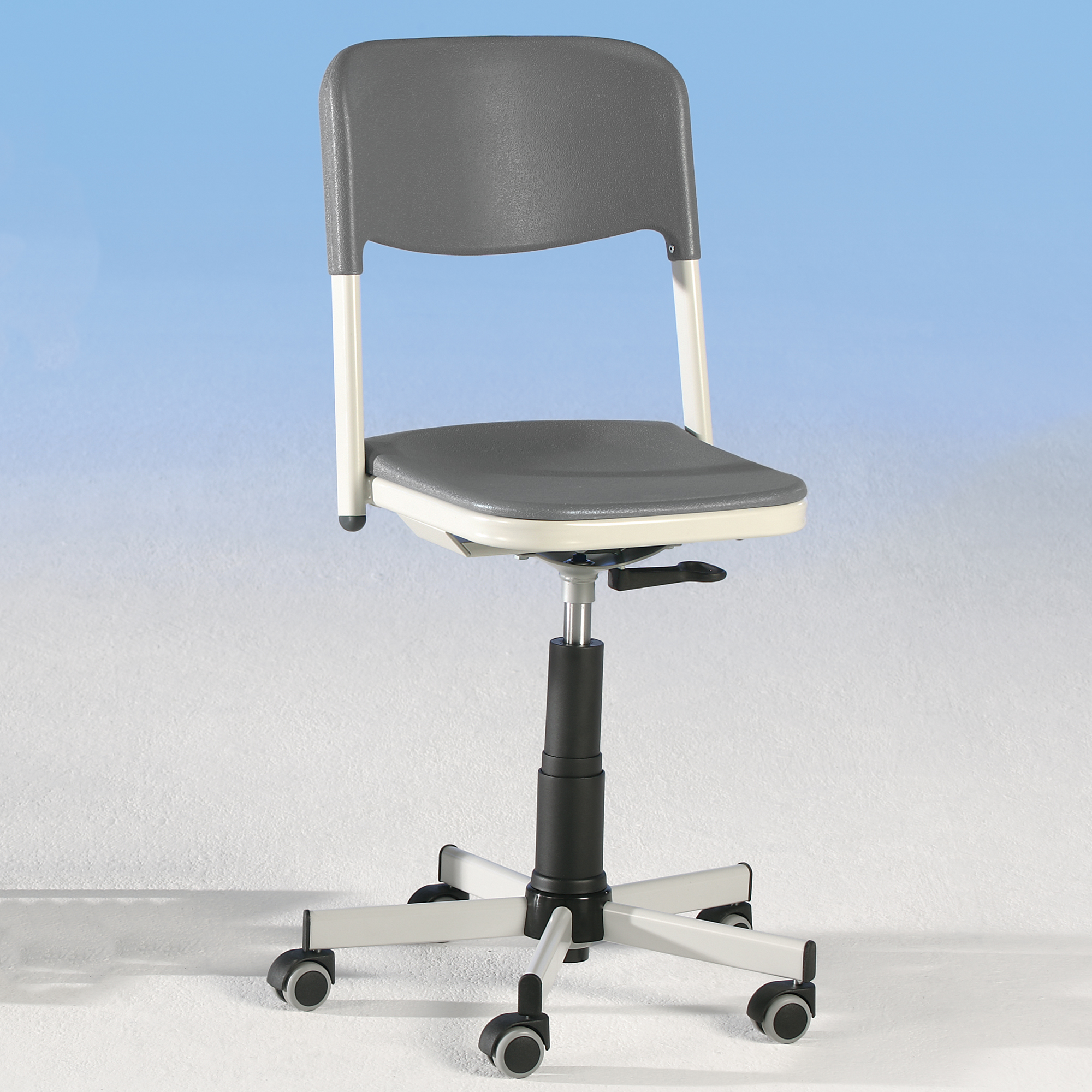 Unser Drehstuhl mit Gaslift ist der perfekte Begleiter in ihrem Büro, Klassenzimmer oder Aufenthaltsraum. Dank seiner fünf Rollen ist er mobil einsetzbar. Sitz und Rücken aus festem Kunststoff in hellgrau extrem haltbar und robust.