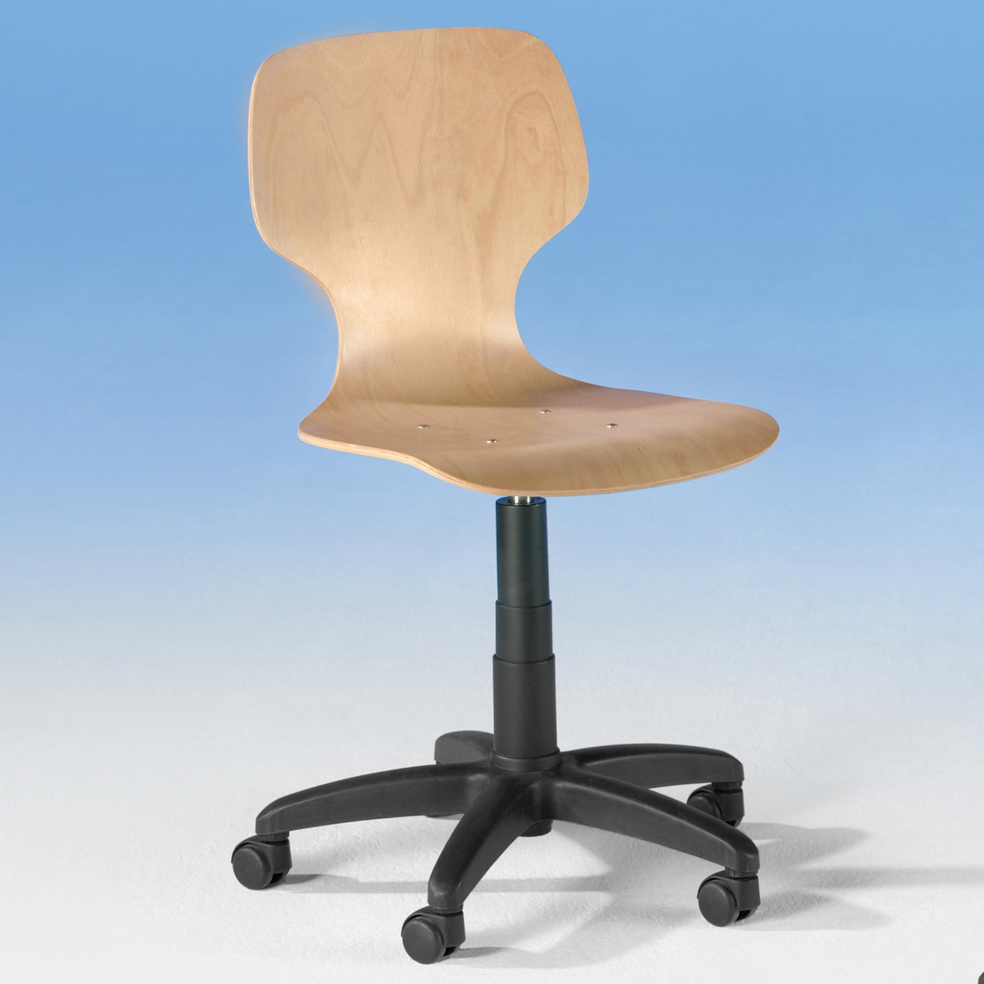 Entdecken Sie den Drehstuhl, der zeitloses Design mit praktischer Funktionalität vereint. Dieser Stuhl ist die perfekte Wahl für alle, die Wert auf Qualität und Ästhetik legen. Der Sitz und die Rückenlehne bestehen aus hochwertigem Buchensperrholz, das lackiert wurde, um eine glatte und langlebige Oberfläche zu gewährleisten. Das natürliche Finish des Buches verleiht dem Stuhl eine warme und einladende Ausstrahlung, die sich harmonisch in jede Umgebung einfügt. Ein besonderes Highlight dieses Drehstuhls ist der Gaslift, der eine stufenlose Höhenverstellung von 41 bis 54 cm ermöglicht. Diese Funktion bietet maximale Flexibilität und sorgt dafür, dass Sie immer die ideale Sitzhöhe finden. Die Mechanik ist so konzipiert, dass sie gegen ein unbeabsichtigtes Herausdrehen gesichert ist, was zusätzliche Sicherheit und Stabilität gewährleistet. Die Sperrholzteile in Buche natur sind nicht nur robust, sondern auch ergonomisch gestaltet, um optimalen Sitzkomfort zu bieten. Egal, ob im Büro, im Atelier oder zu Hause – dieser Drehspindelstuhl kombiniert praktische Funktionalität mit stilvollem Design und wird schnell zu einem unverzichtbaren Bestandteil Ihres Interieurs.