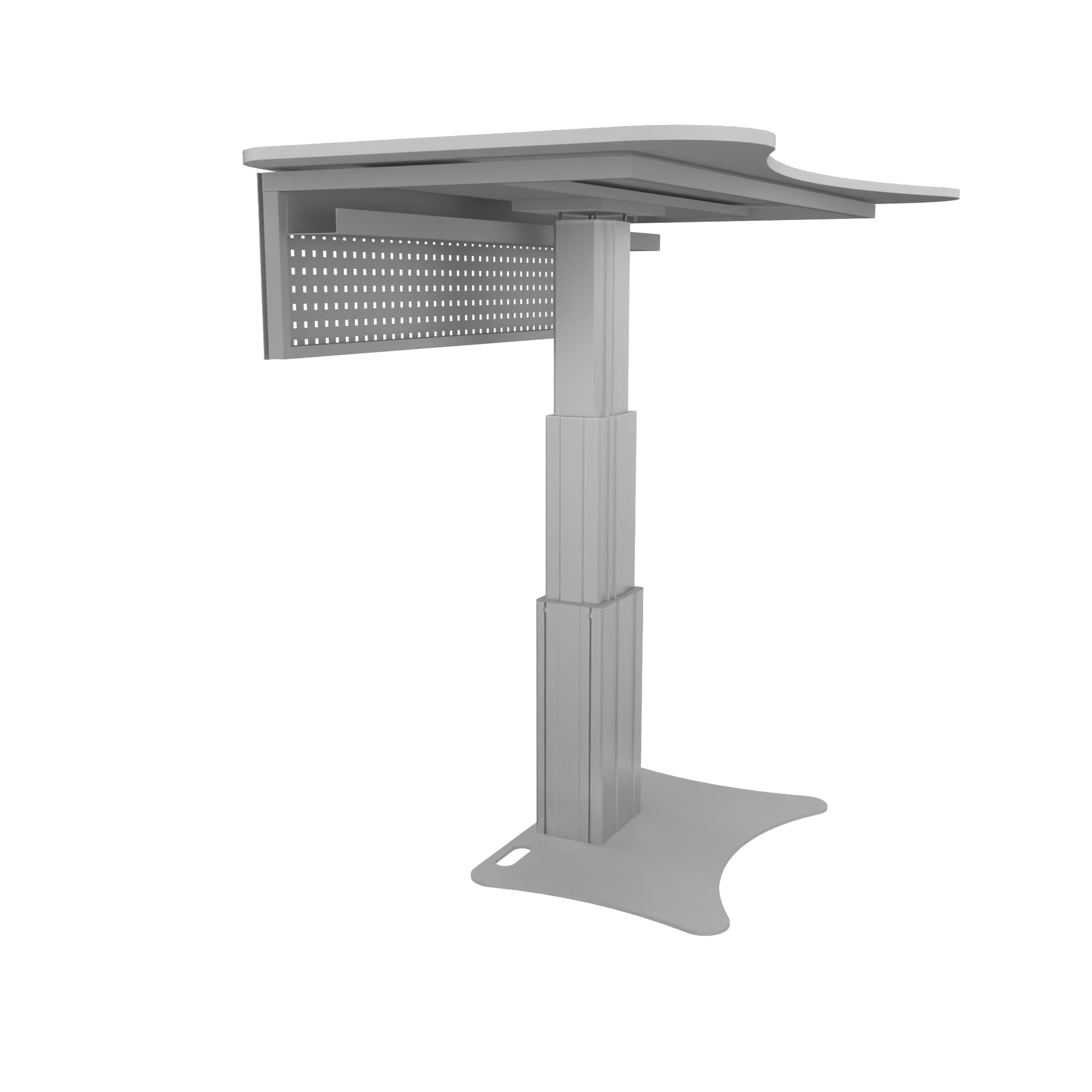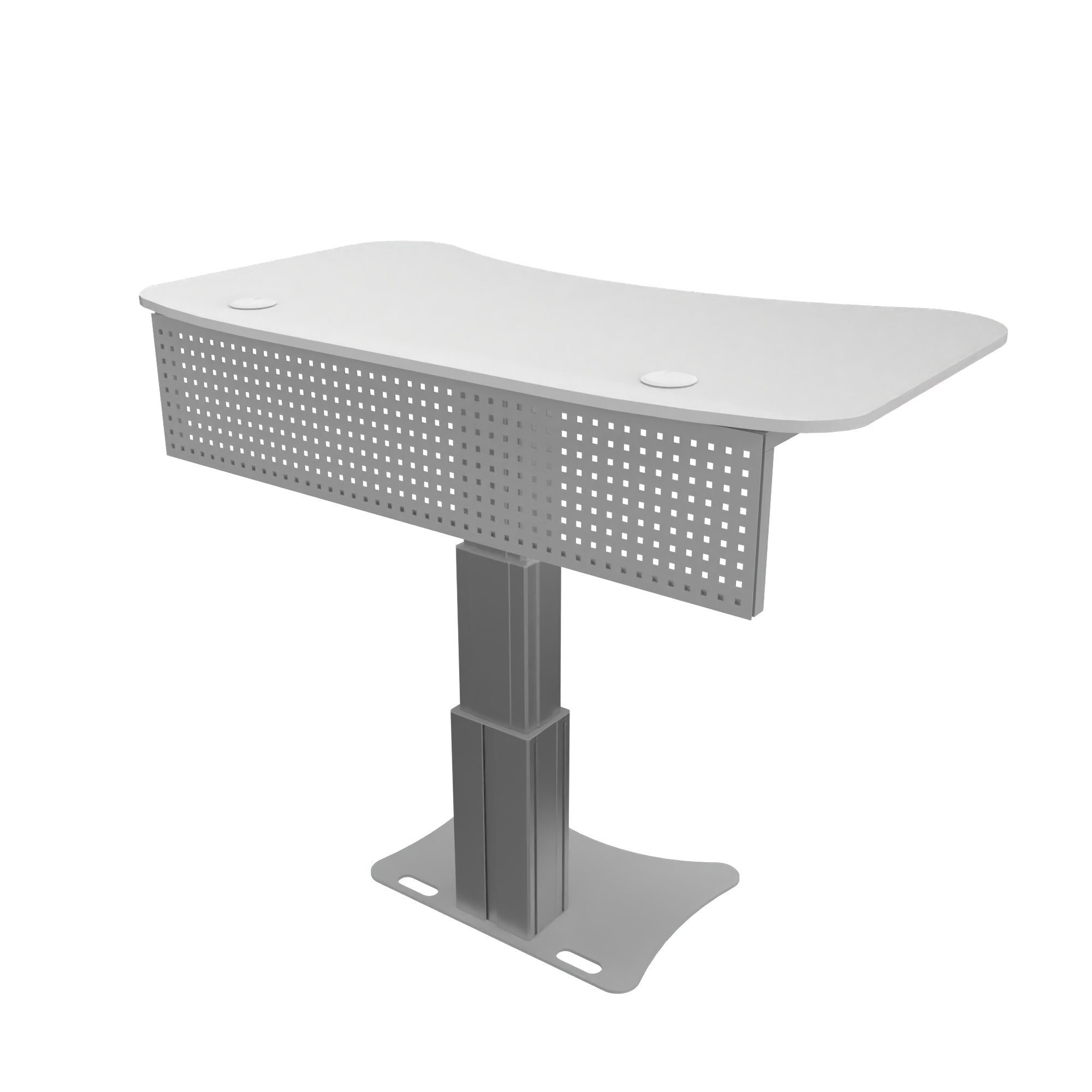 Unsere höhenverstellbaren Schreibtische und Rednerpulte können als ergonomische Steh- und Sitzarbeitsplätze genutzt werden und sind mit einer 8 mm starken Bodenplatte ausgestattet, damit der Schreibtisch bzw. das Rednerpult stabil im Raum stehen kann.