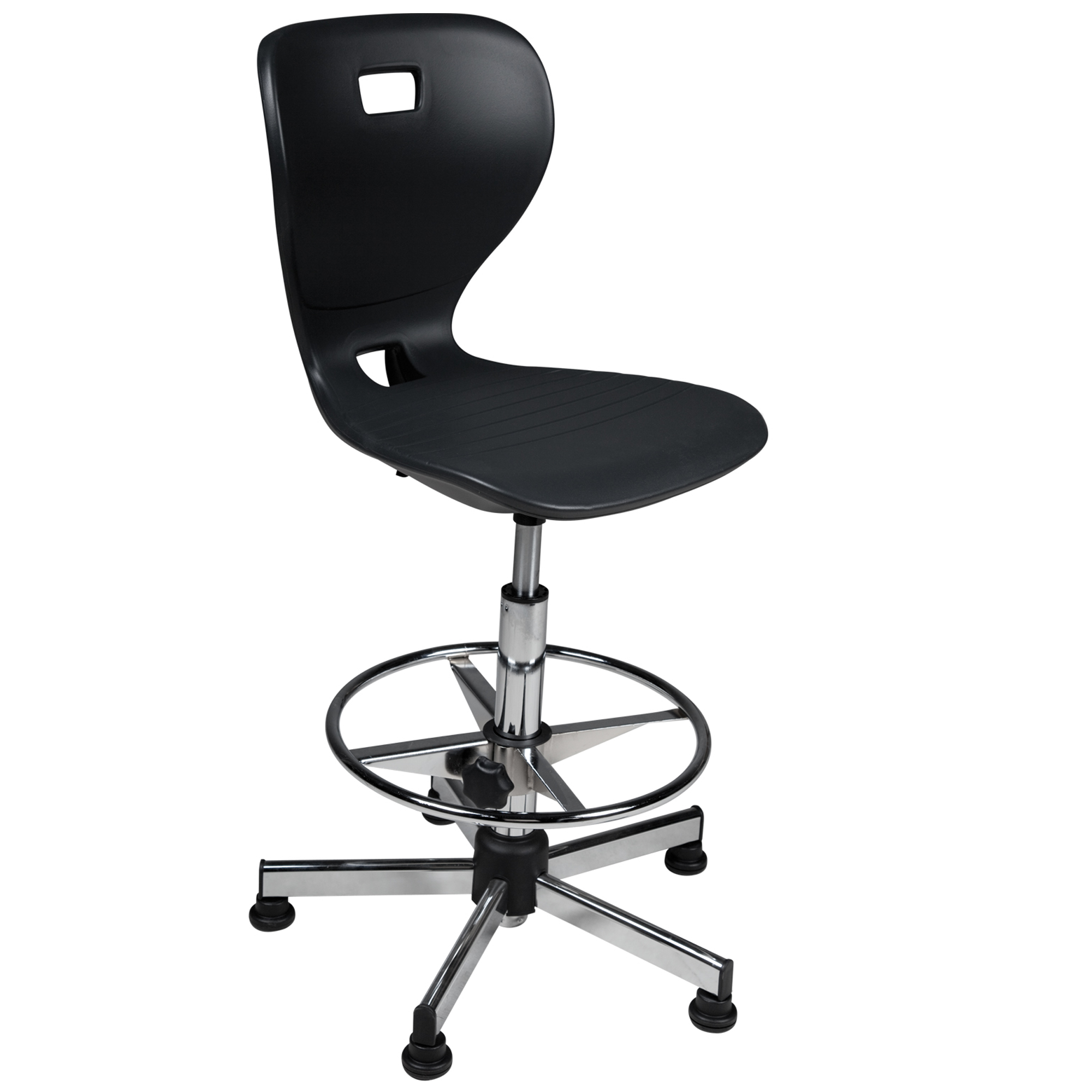 Der Ergostar Counter ist ein ergonomischer Schülerstuhl und besitzt einen stabilen Chromfußring, welcher in der Höhe verstellbar ist. Die 5 großflächigen Gleiter angebracht an ein Fußkreuz aus Chrom, verleihen ihm einen sicheren Stand. Zusätzlich zu dem höchenverstellbaren Fußring, lässt sich der Schulstuhl durch eine LGA geprüfte Sicherheitsgasfeder stufenlos in der Sitzhöhe verstellen. Für einen leichten Luftpolstereffekt sorgt die doppelwandige Sitzschale aus Kunststoff, welche in einer Vielzahl an frischen Farben zu Verfügung steht.