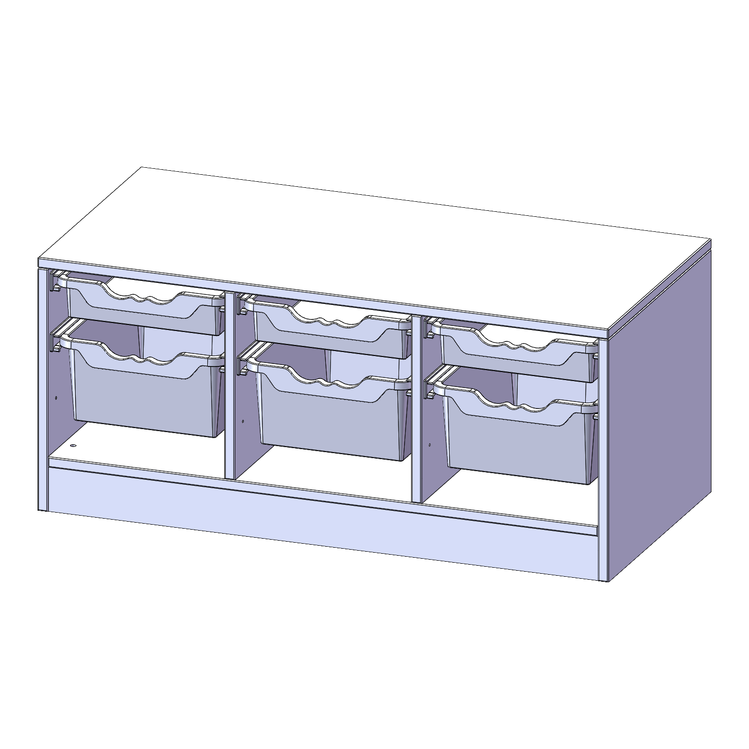B/H/T: 104,5x46x50 cm, mit Sockel (81 mm), 3 flache und 3 hohe ErgoTray Boxen