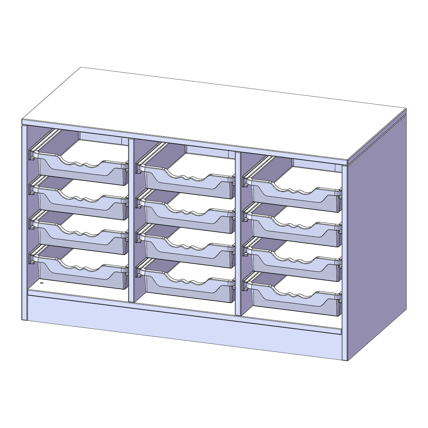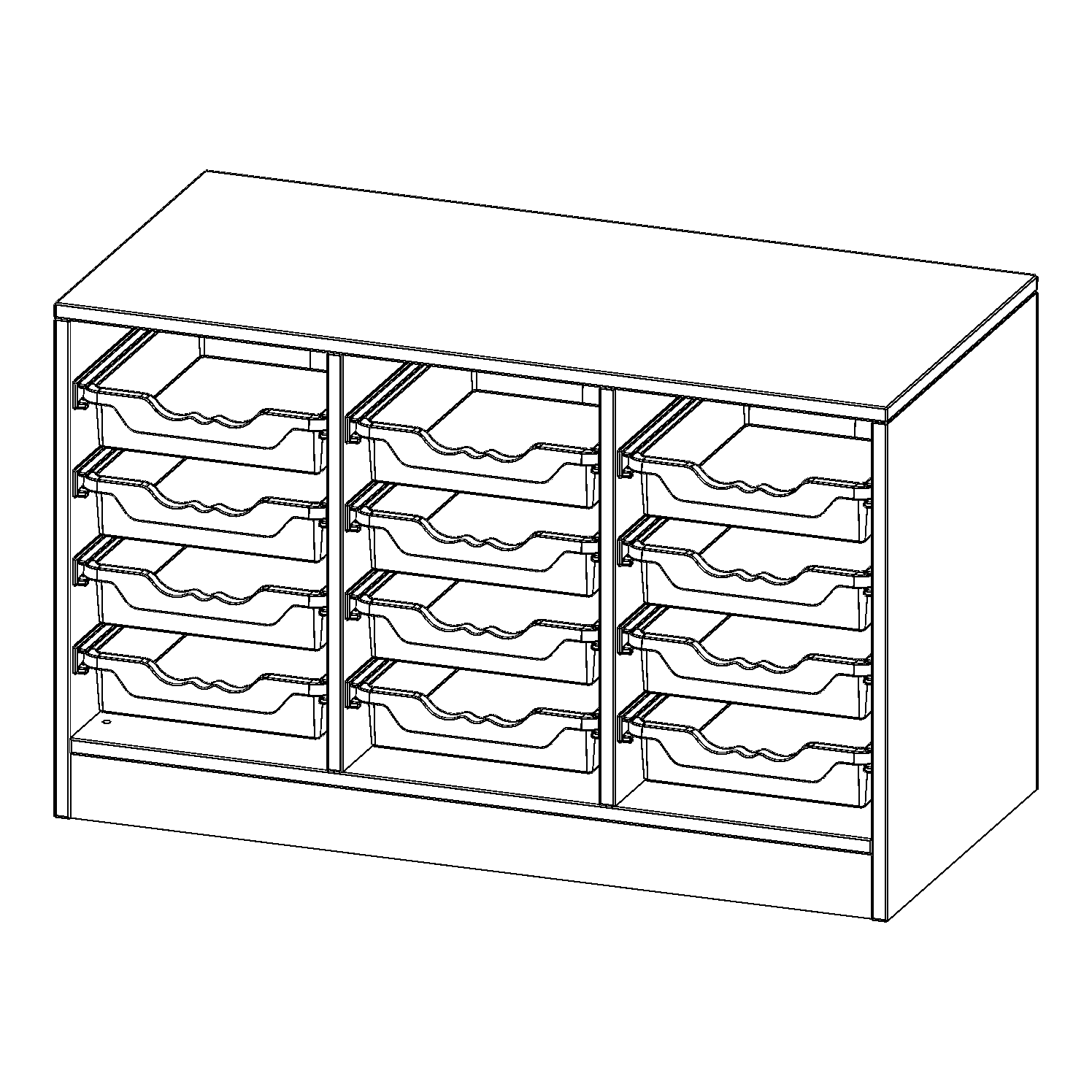 B/H/T: 104,5x64x50 cm, mit Sockel (81 mm), 12 flache ErgoTray Boxen