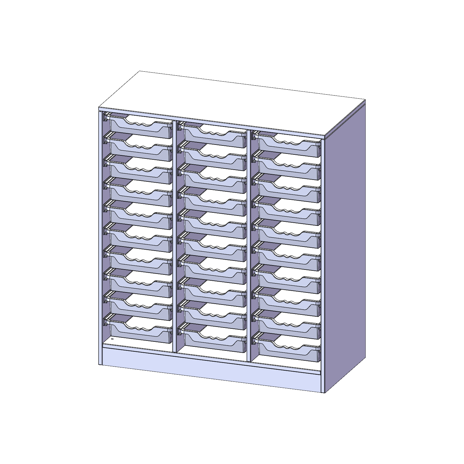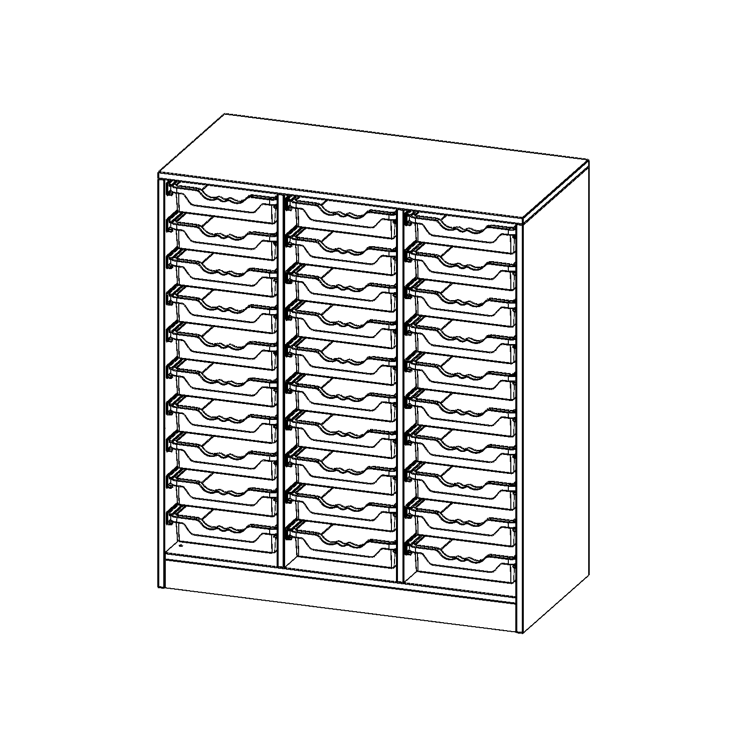 B/H/T: 104,5x118x50 cm, mit Sockel (81 mm), 30 flache ErgoTray Boxen