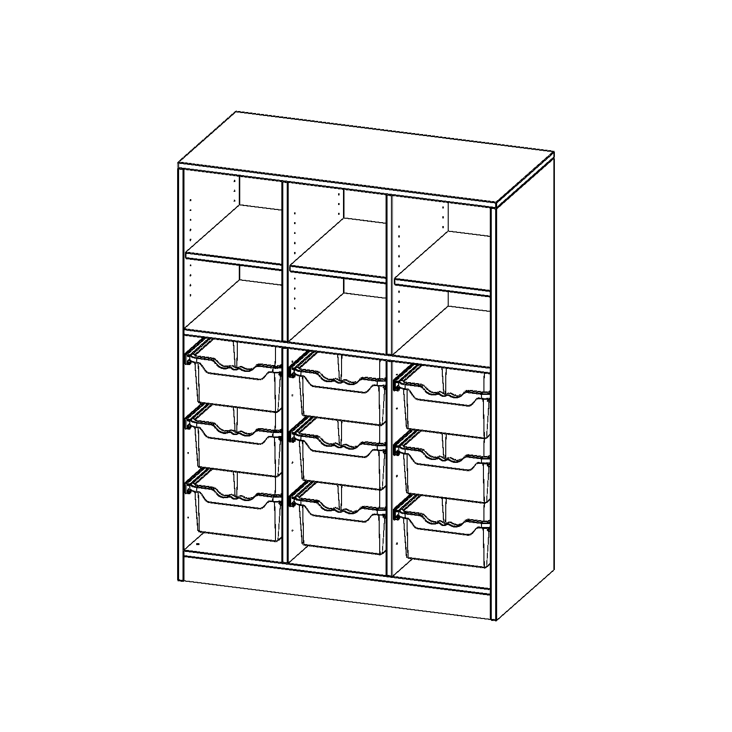 B/H/T: 104,5x136x50 cm, mit Sockel (81 mm), unten 9 hohe, oben 6 Fächer