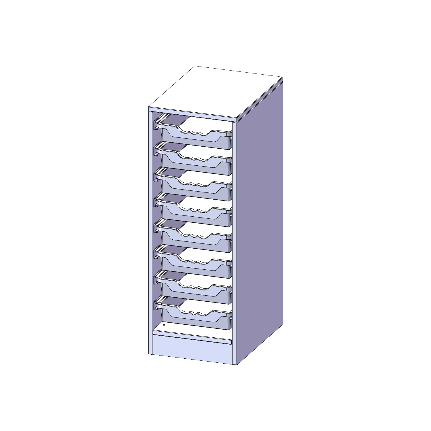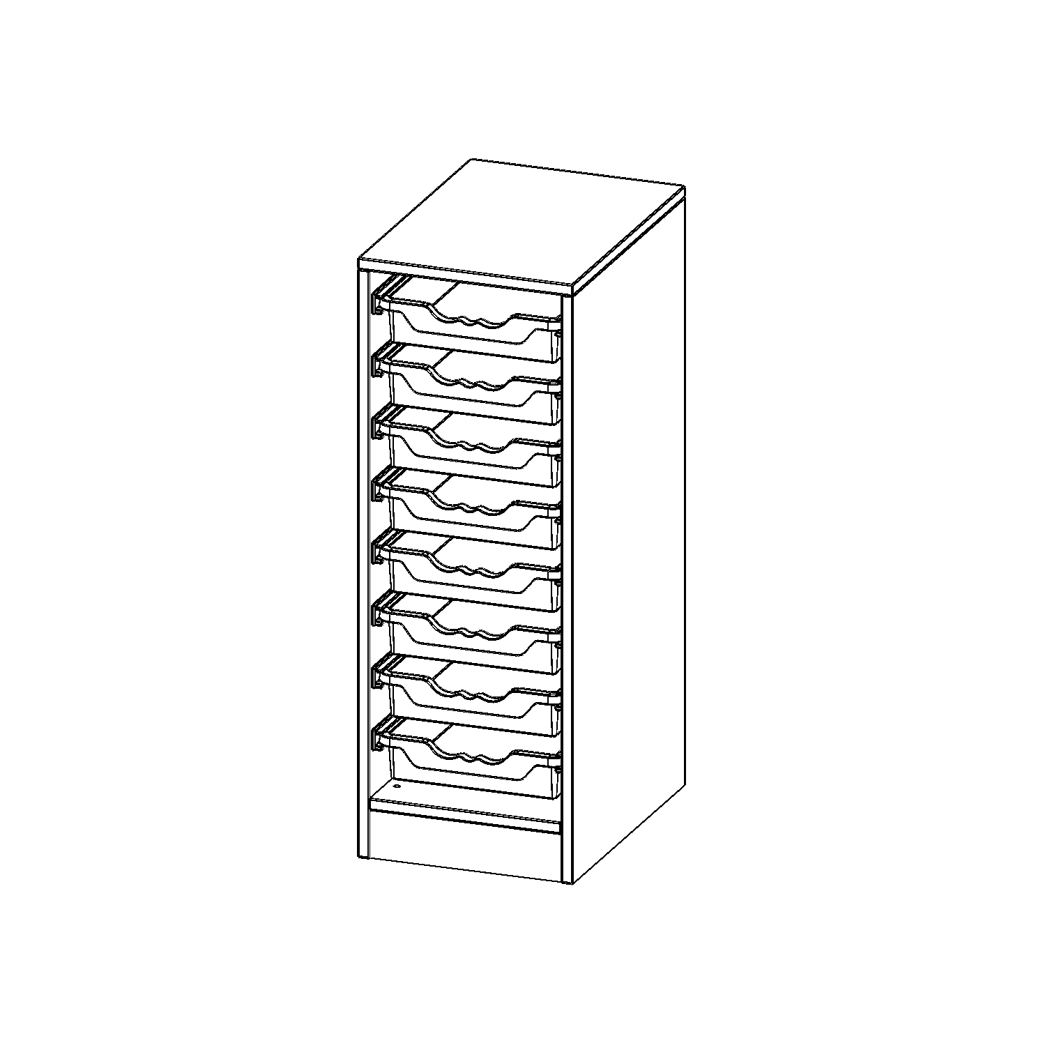 B/H/T: 36,1x100x50 cm, mit Sockel (81 mm), 8 flache ErgoTray Boxen