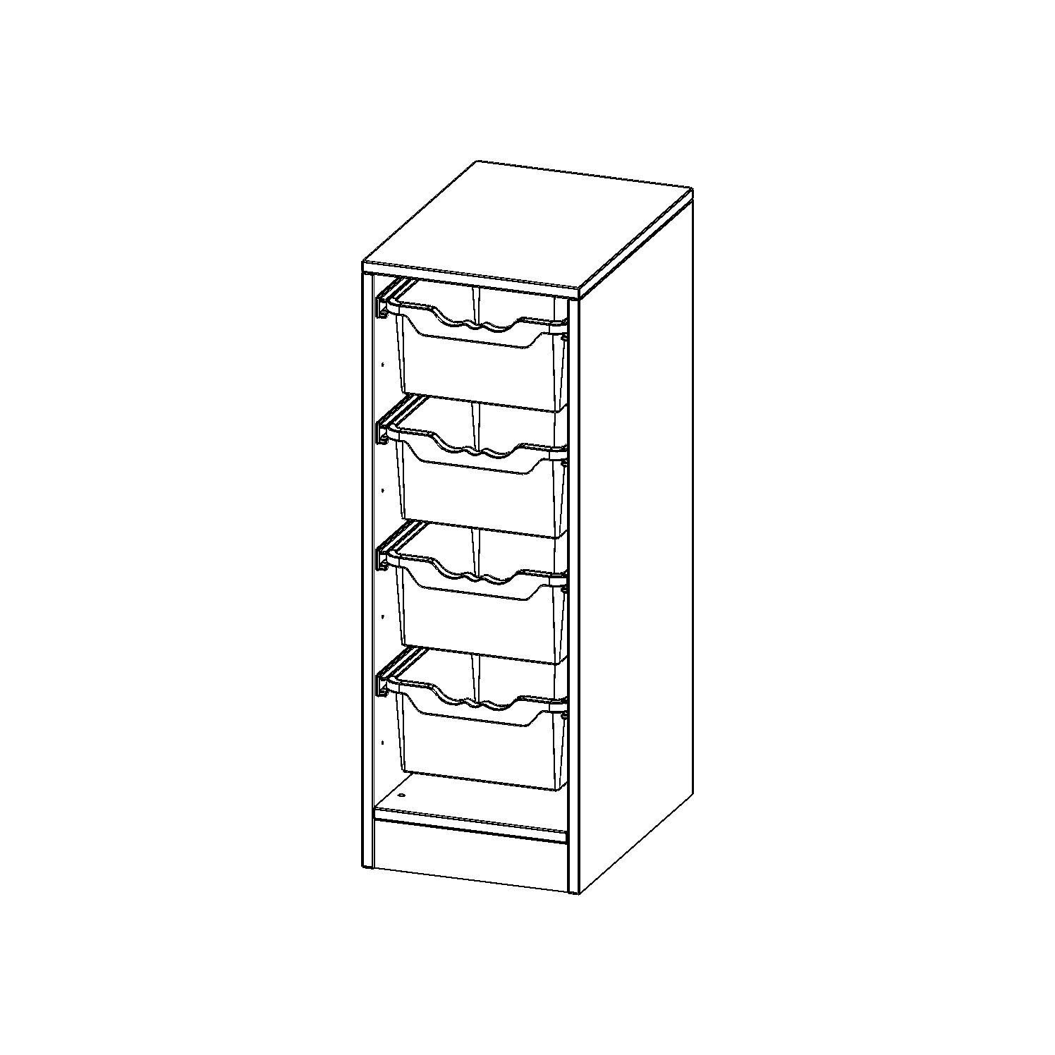 B/H/T: 36,1x100x50 cm, mit Sockel (81 mm), 4 hohe ErgoTray Boxen