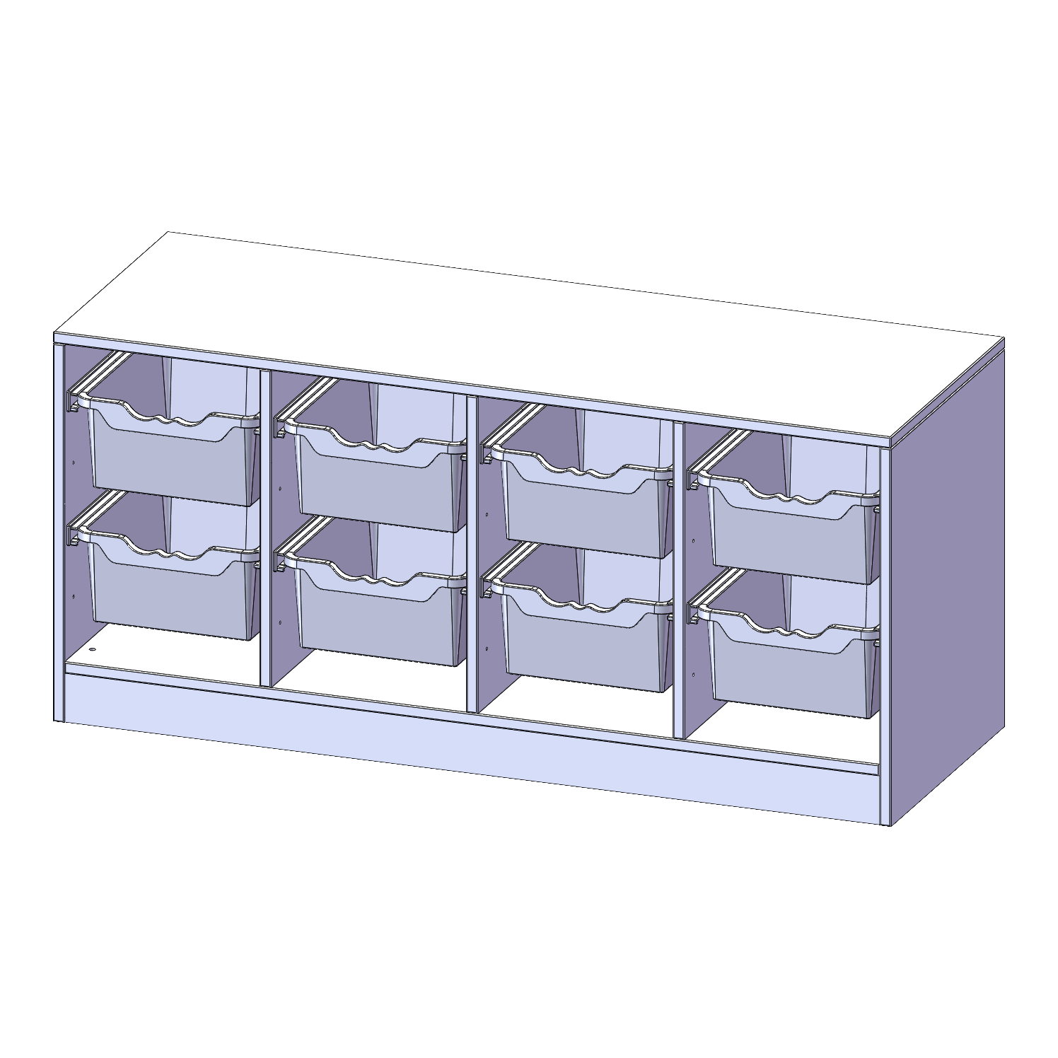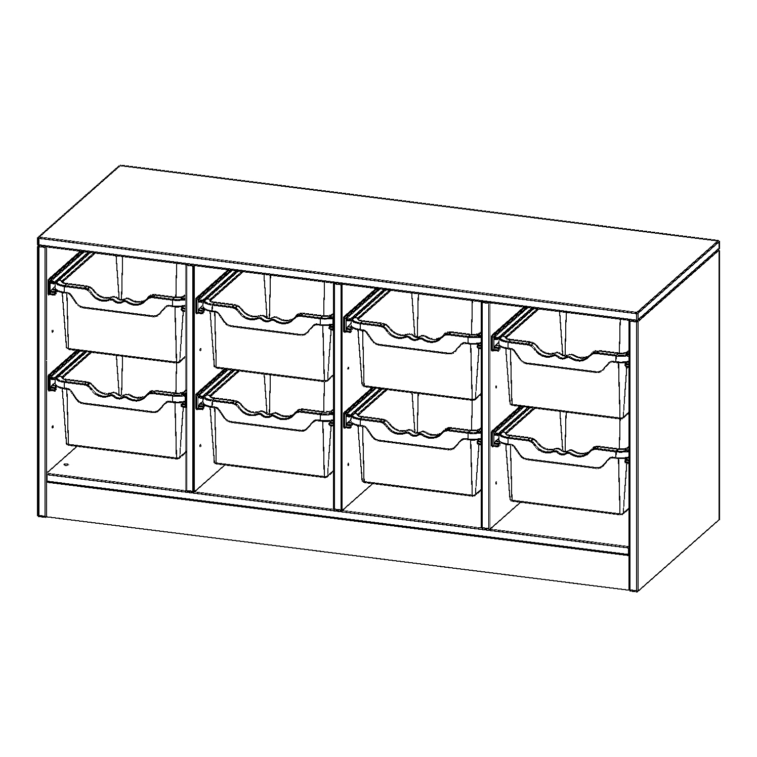 B/H/T: 138,7x64x50 cm, mit Sockel (81 mm), 8 hohe ErgoTray Boxen