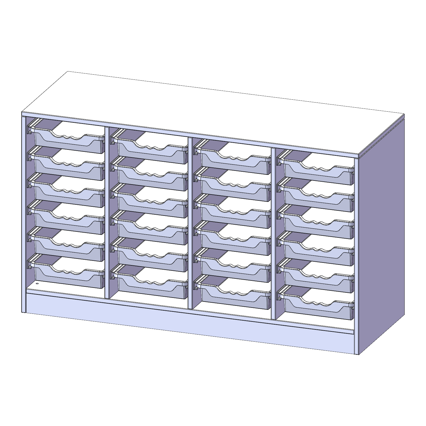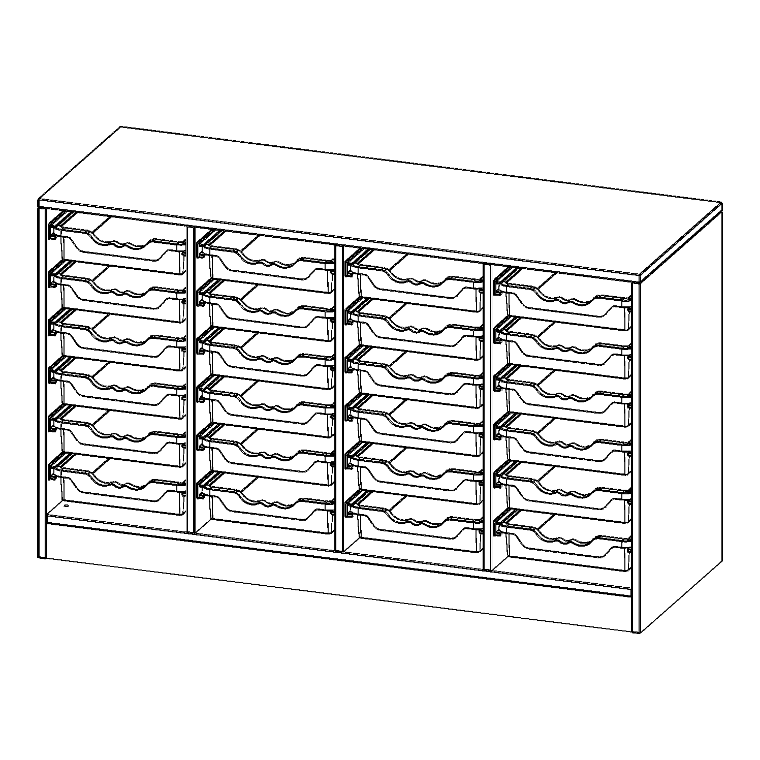 B/H/T: 138,7x82x50 cm, mit Sockel (81 mm), 24 flache ErgoTray Boxen