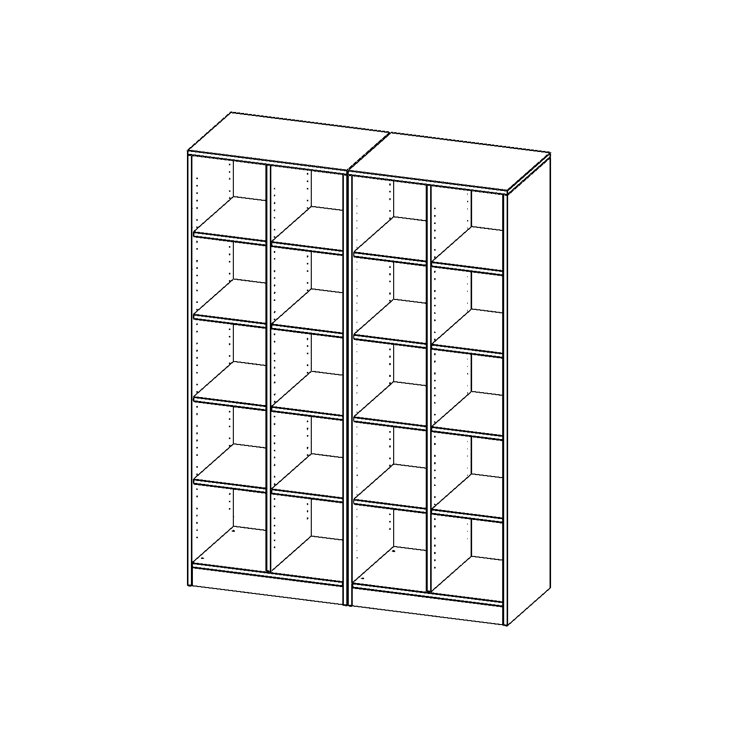 B/H/T: 140,6x190x50 cm, mit Sockel (81 mm), zweiteilig und Mittelwand, ohne Boxen, 16 Einlegeböden
