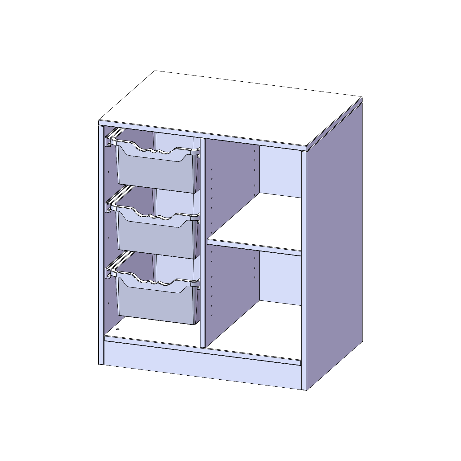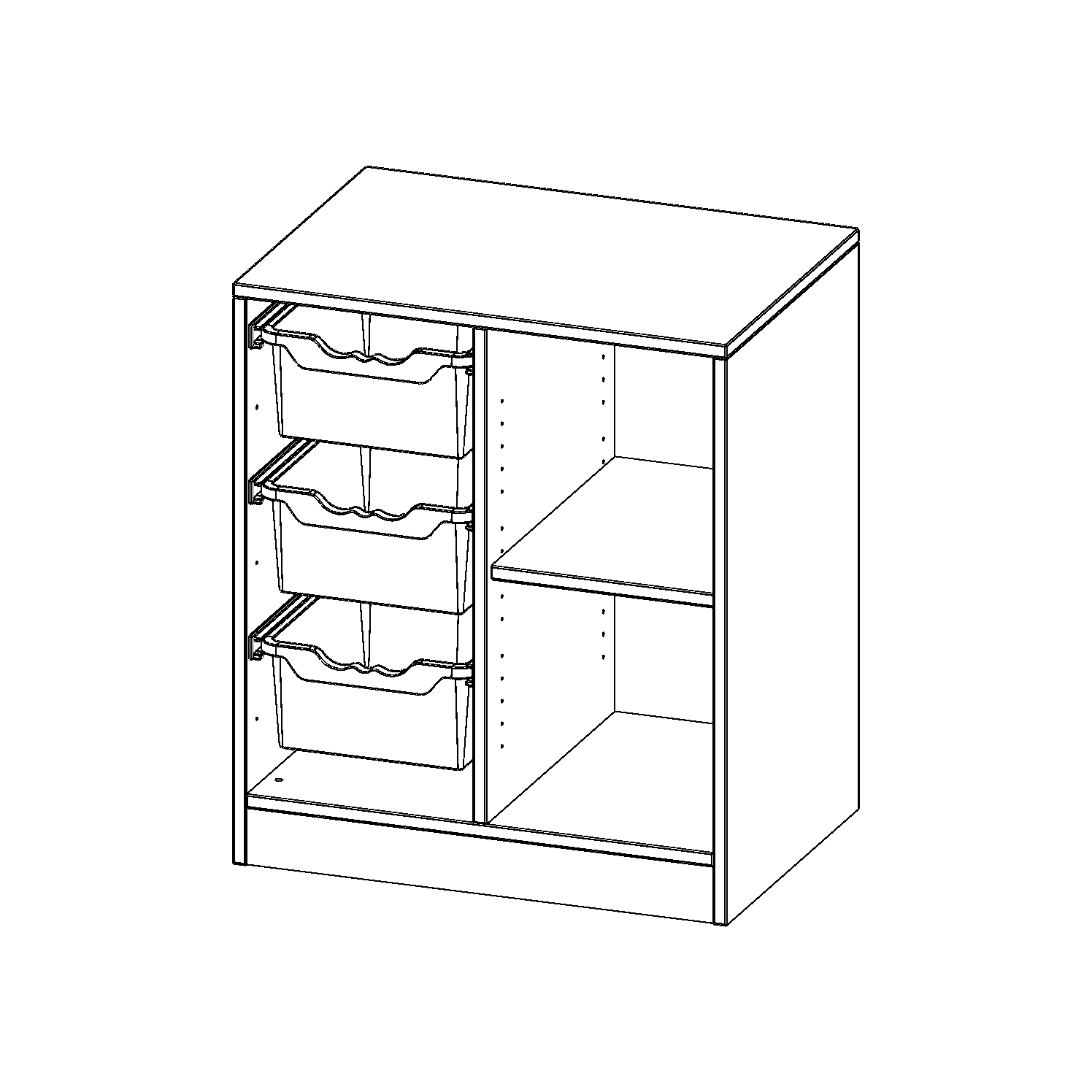 B/H/T: 70,3x82x50 cm, mit Sockel (81 mm), rechts 2 Fächer, links 3 hohe ErgoTray Boxen