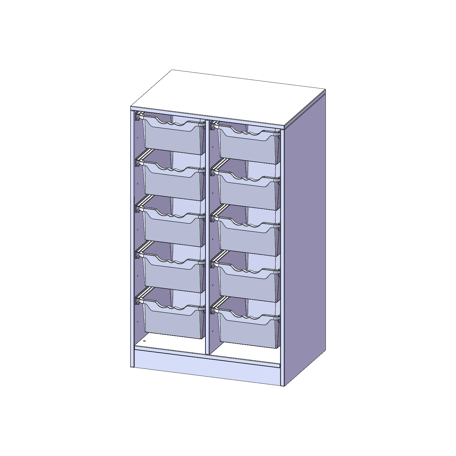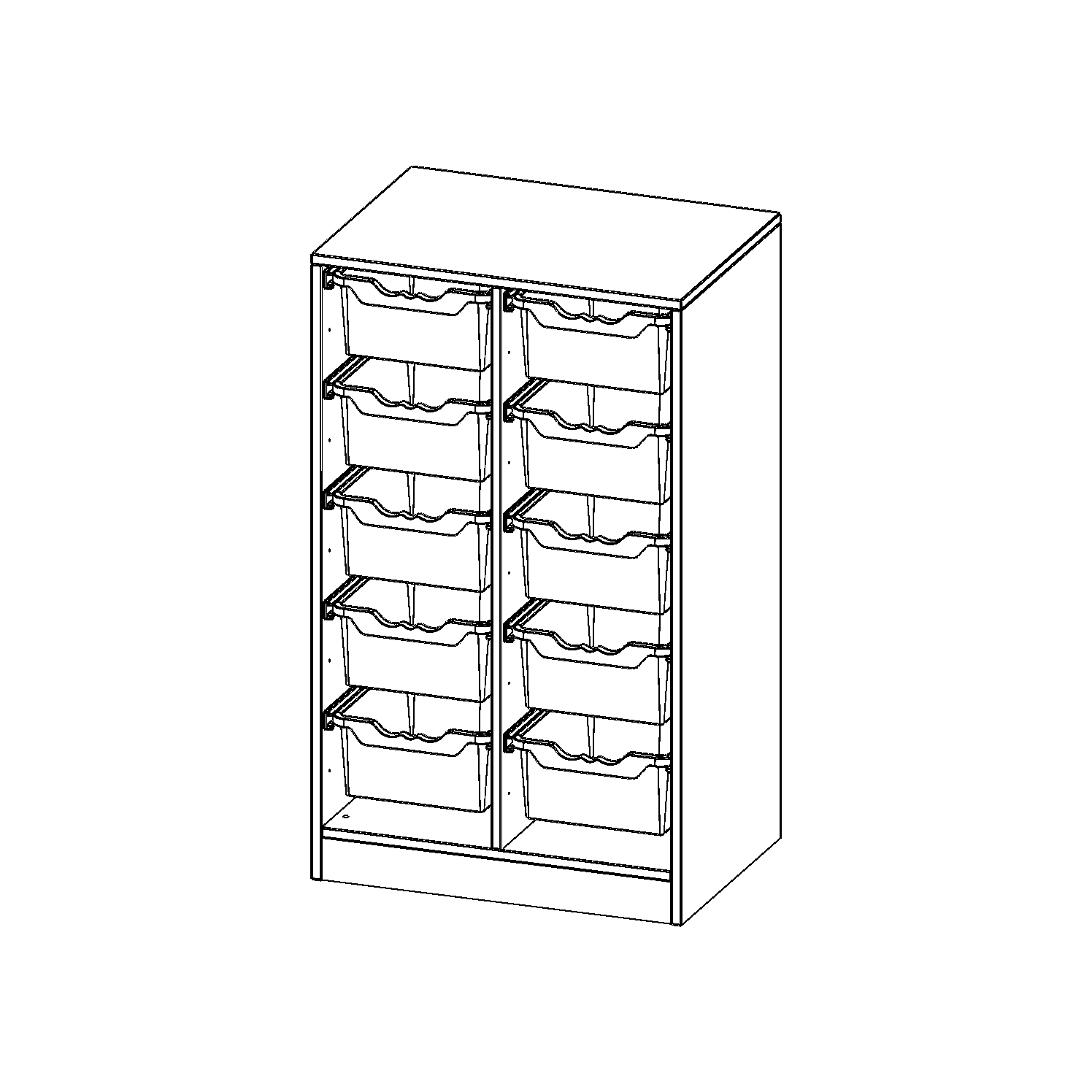 B/H/T: 70,3x118x50 cm, mit Sockel (81 mm), 10 hohe ErgoTray Boxen