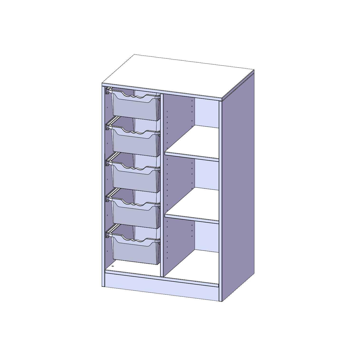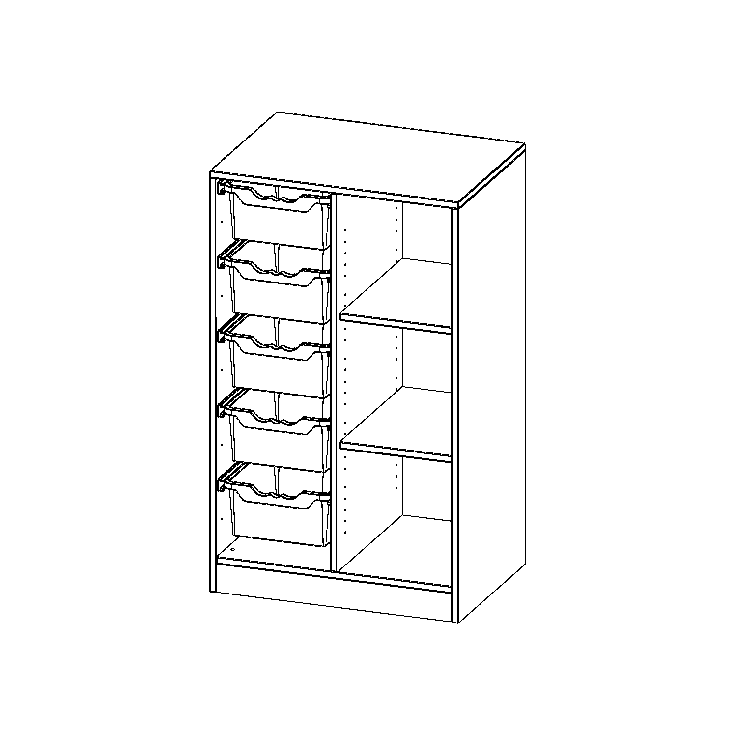 B/H/T: 70,3x118x50 cm, mit Sockel (81 mm), rechts 3 Fächer, links 5 hohe ErgoTray Boxen