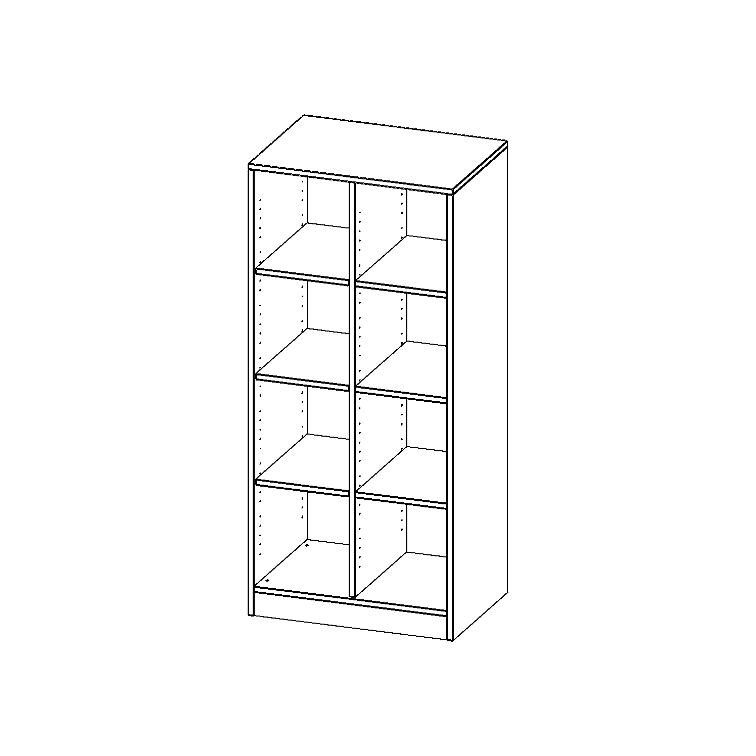 B/H/T: 70,3x154x50 cm, mit Sockel (81 mm) und Mittelwand, ohne Boxen, 6 Einlegeböden