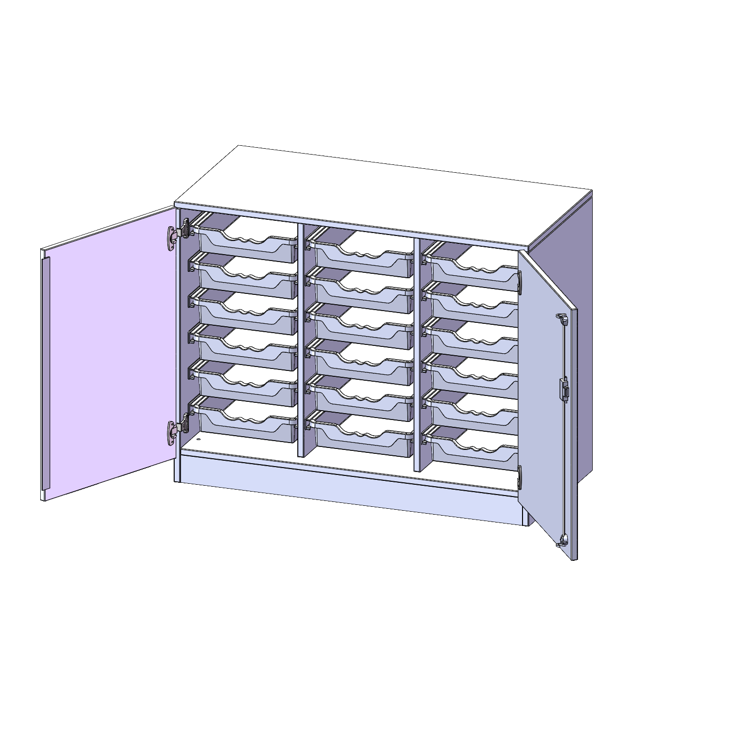 B/H/T: 104,5x82x50 cm, zweitürig, mit Sockel (81 mm), mit 18 flachen ErgoTray Boxen