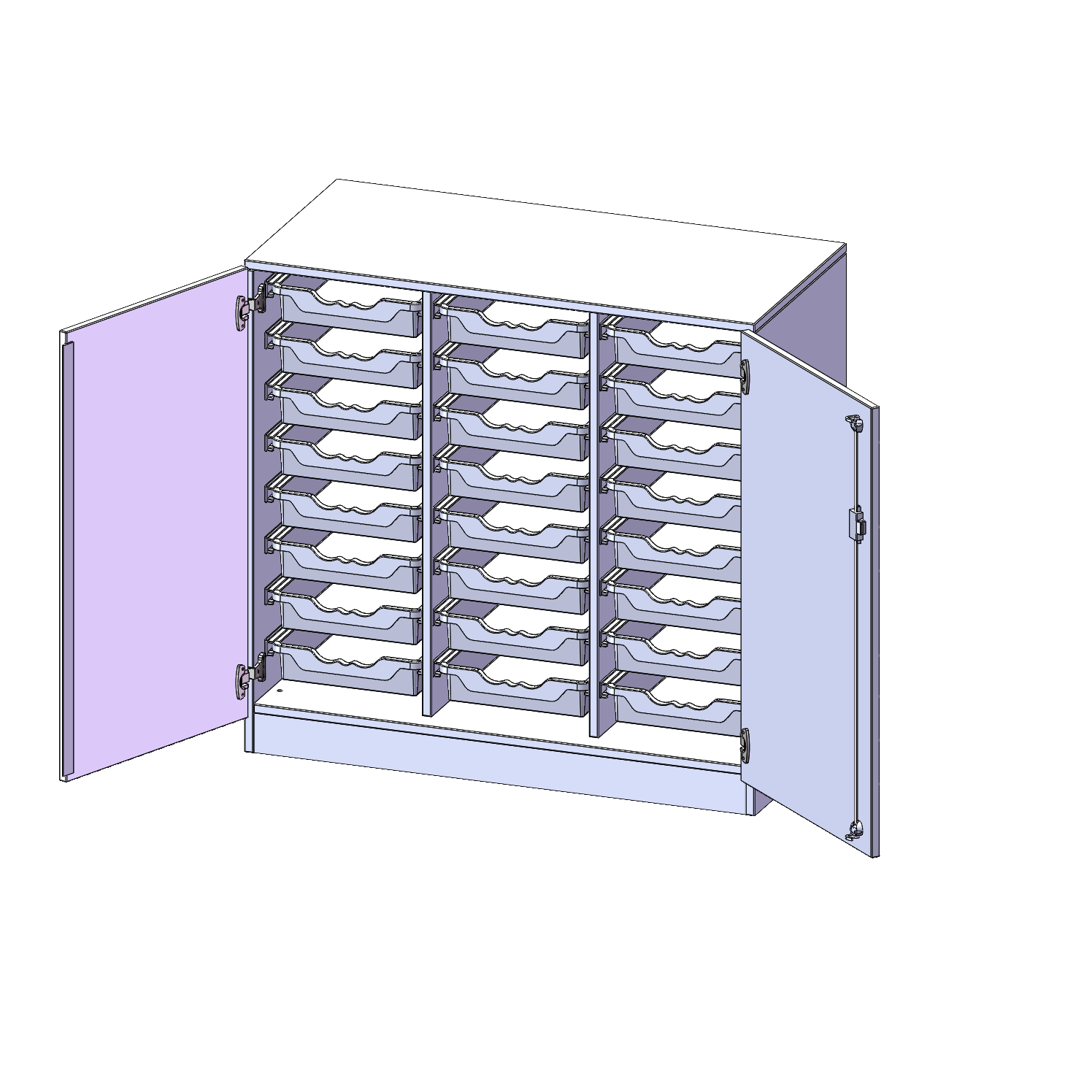 B/H/T: 104,5x100x50 cm, zweitürig, mit Sockel (81 mm), mit 24 flachen ErgoTray Boxen
