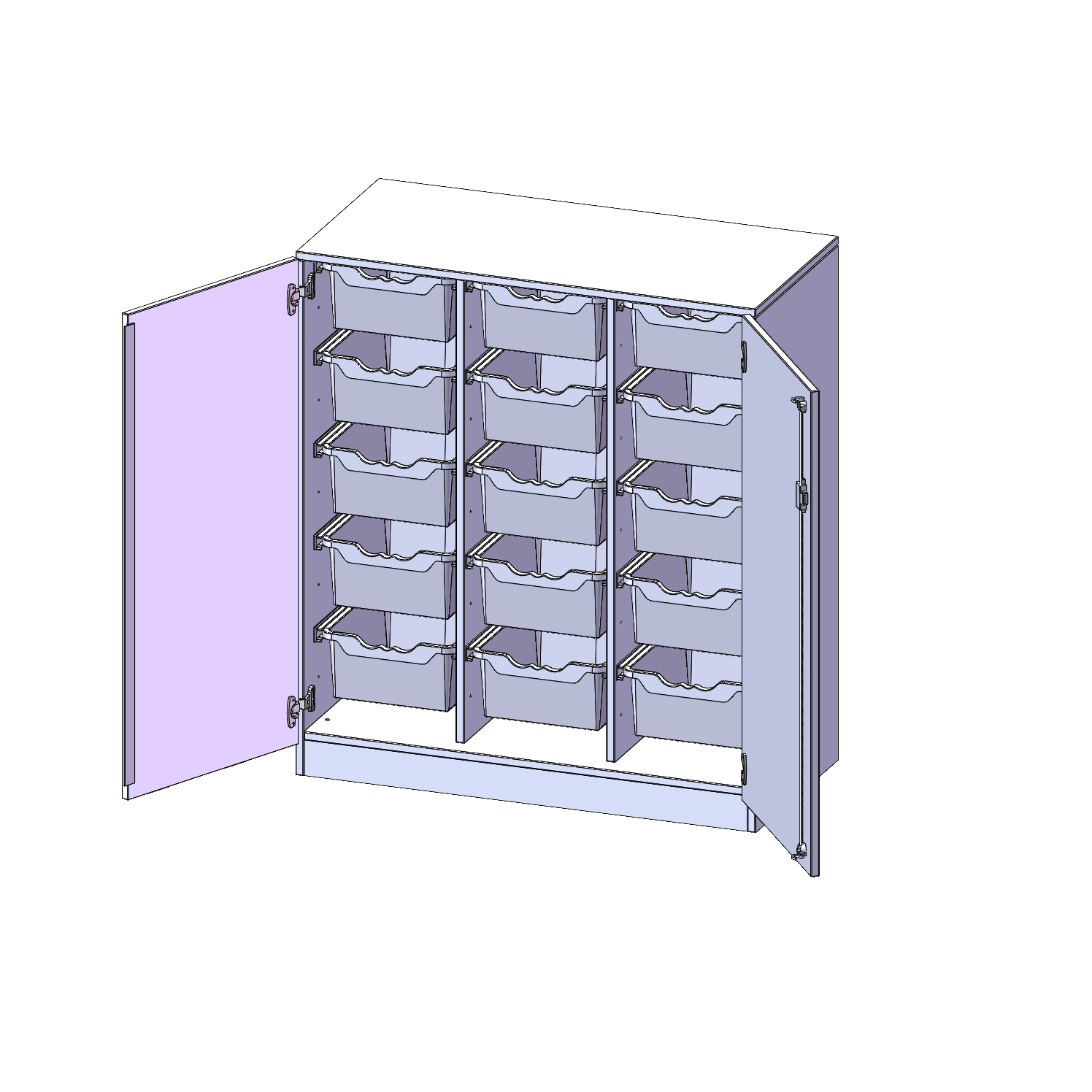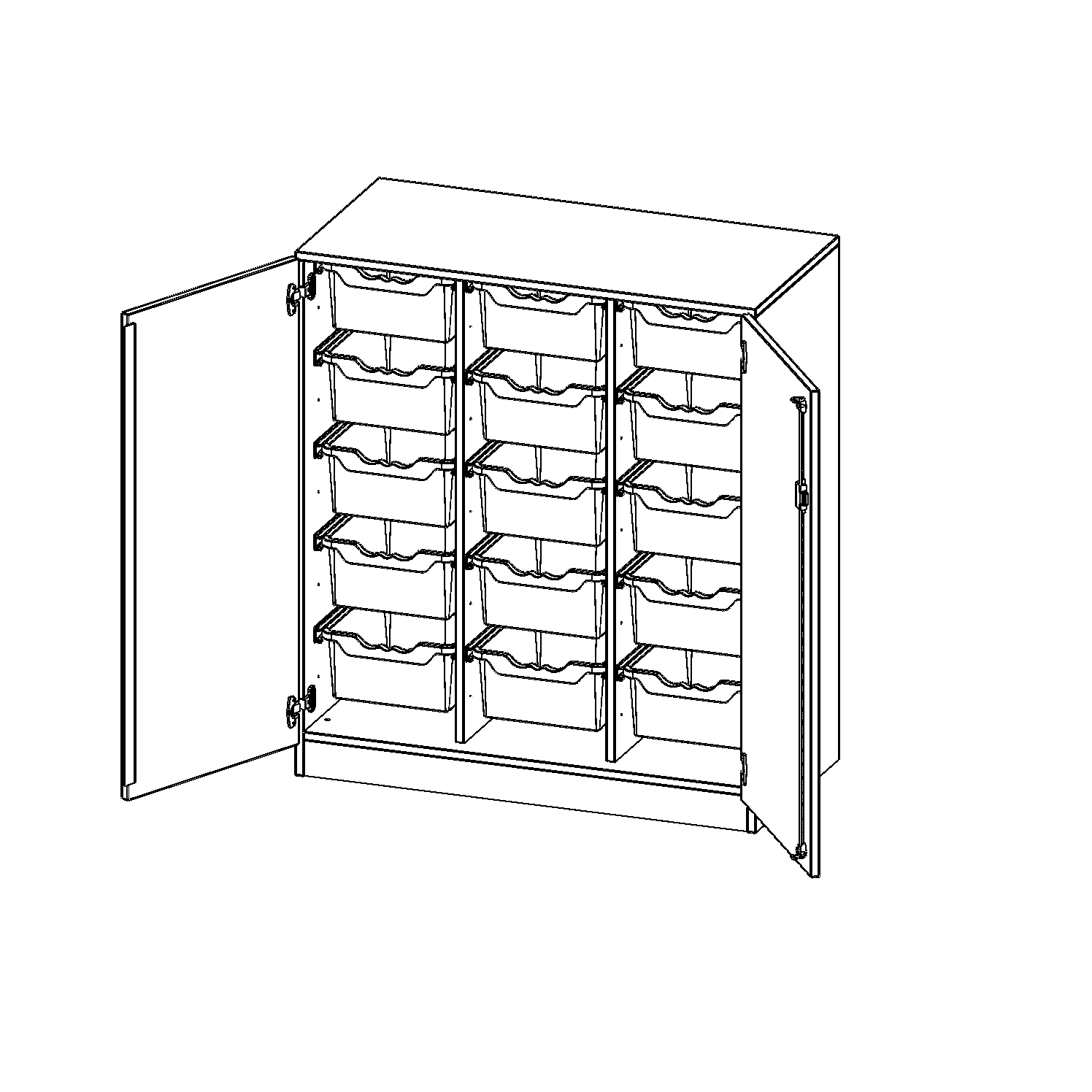 B/H/T: 104,5x118x50 cm, zweitürig, mit Sockel (81 mm), mit 15 hohen ErgoTray Boxen