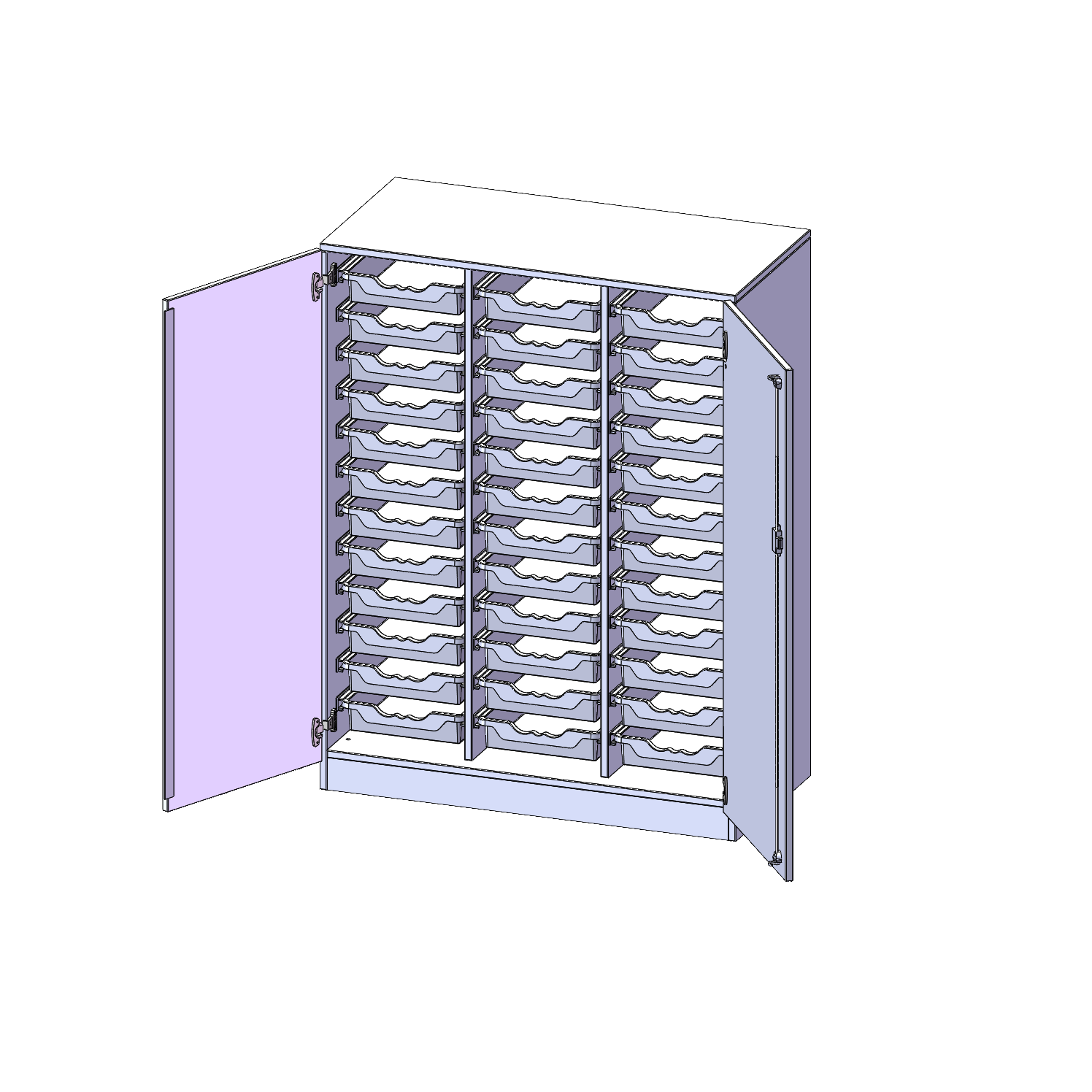 B/H/T: 104,5x136x50 cm, zweitürig, mit Sockel (81 mm), mit 36 flachen ErgoTray Boxen