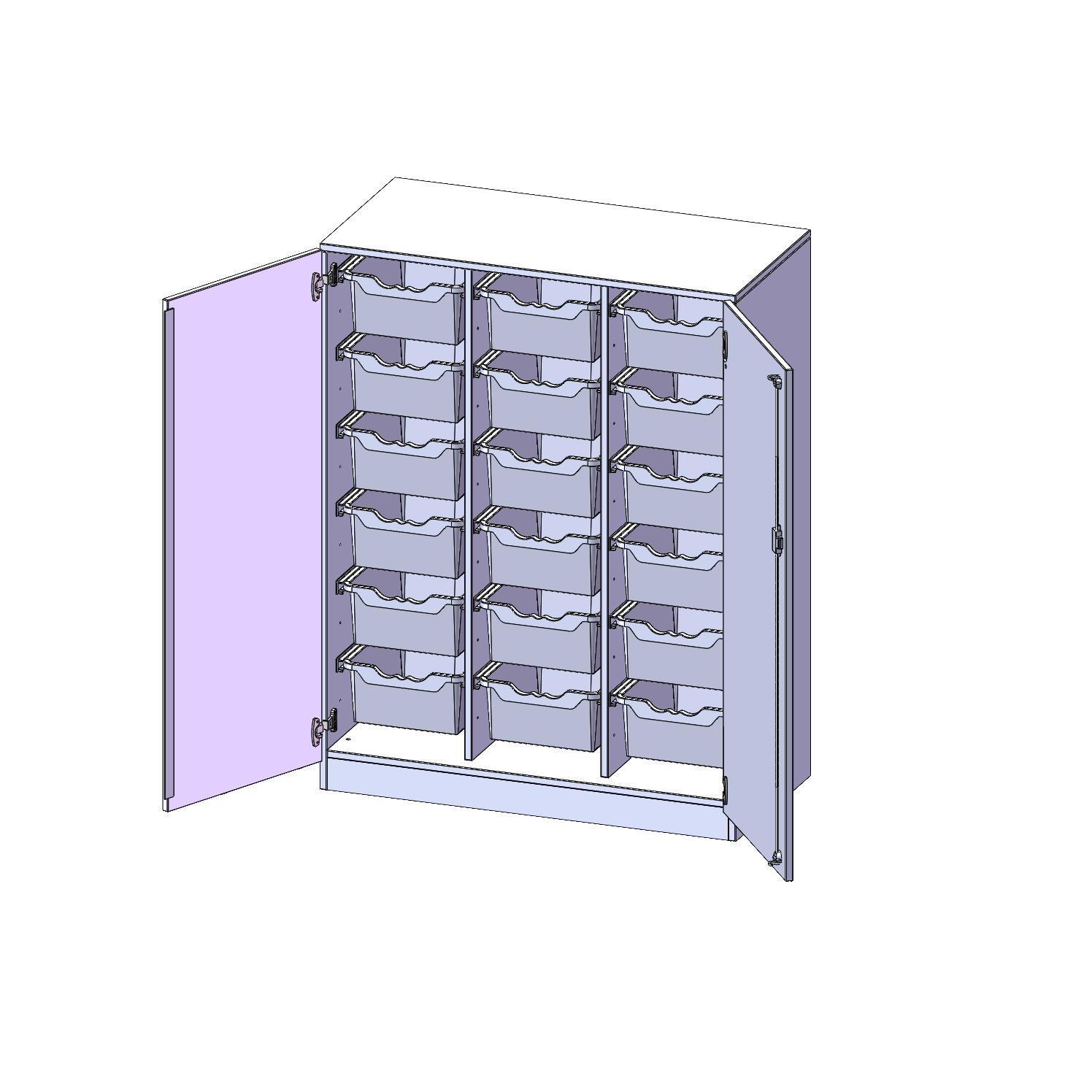 B/H/T: 104,5x136x50 cm, zweitürig, mit Sockel (81 mm), mit 18 hohen ErgoTray Boxen