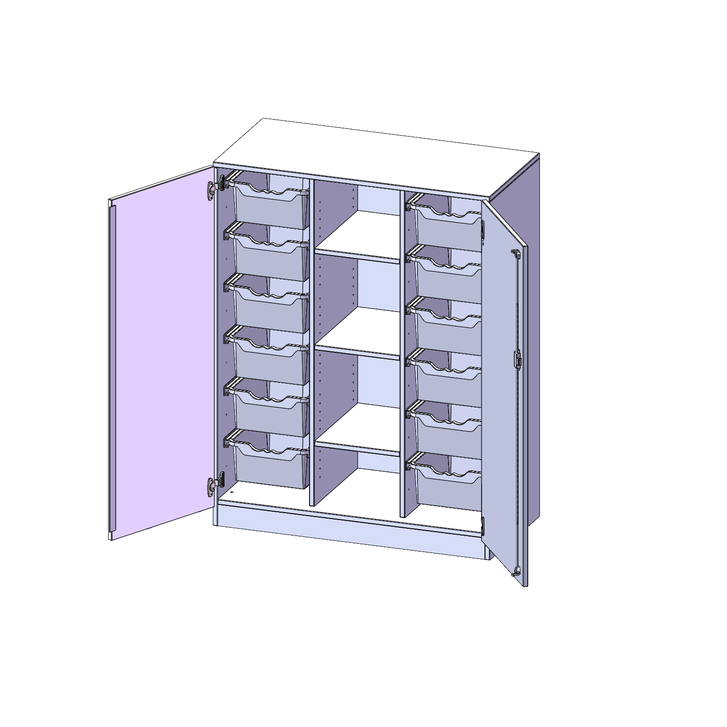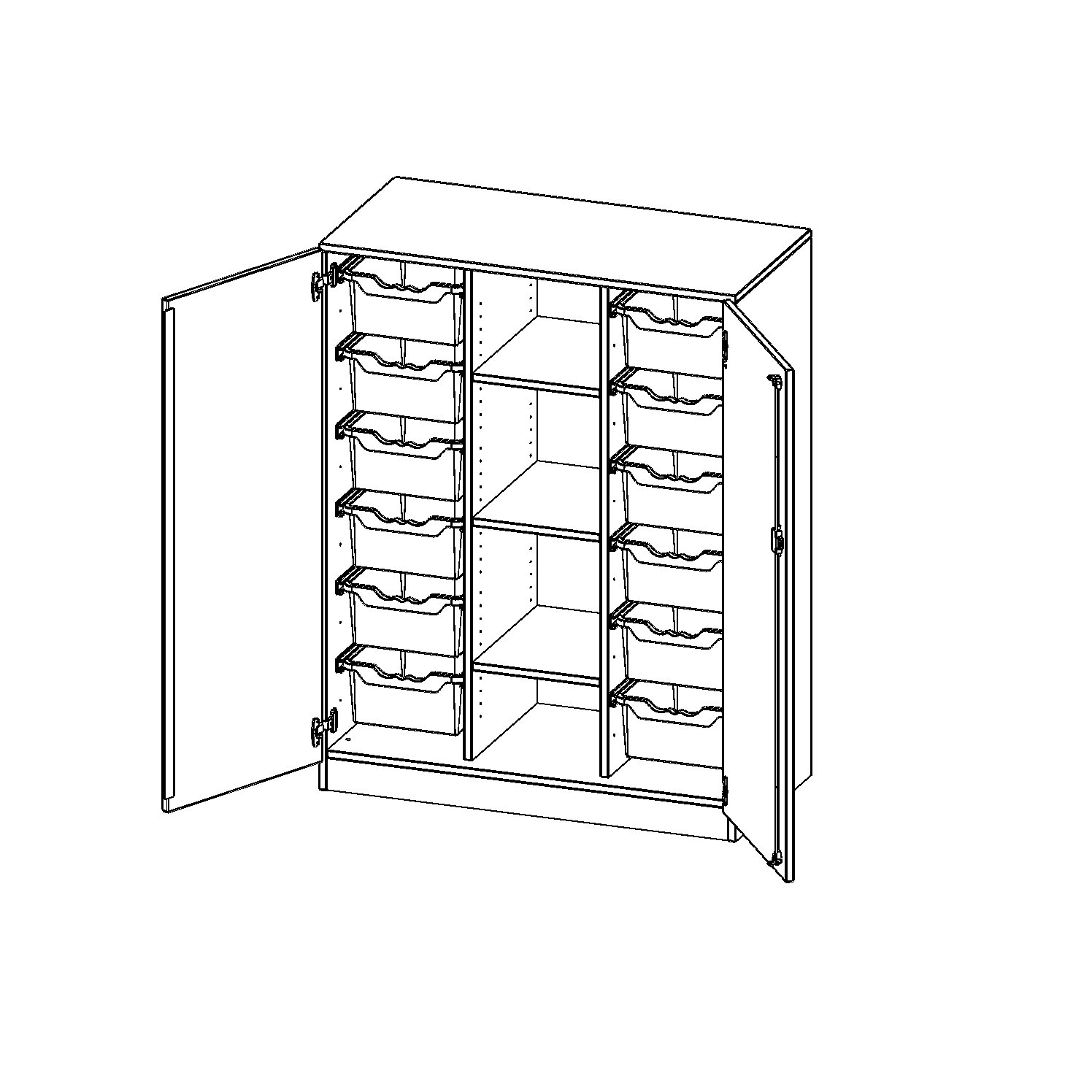 B/H/T: 104,5x136x50 cm, zweitürig, mit Sockel (81 mm), mit 12 hohen ErgoTray Boxen