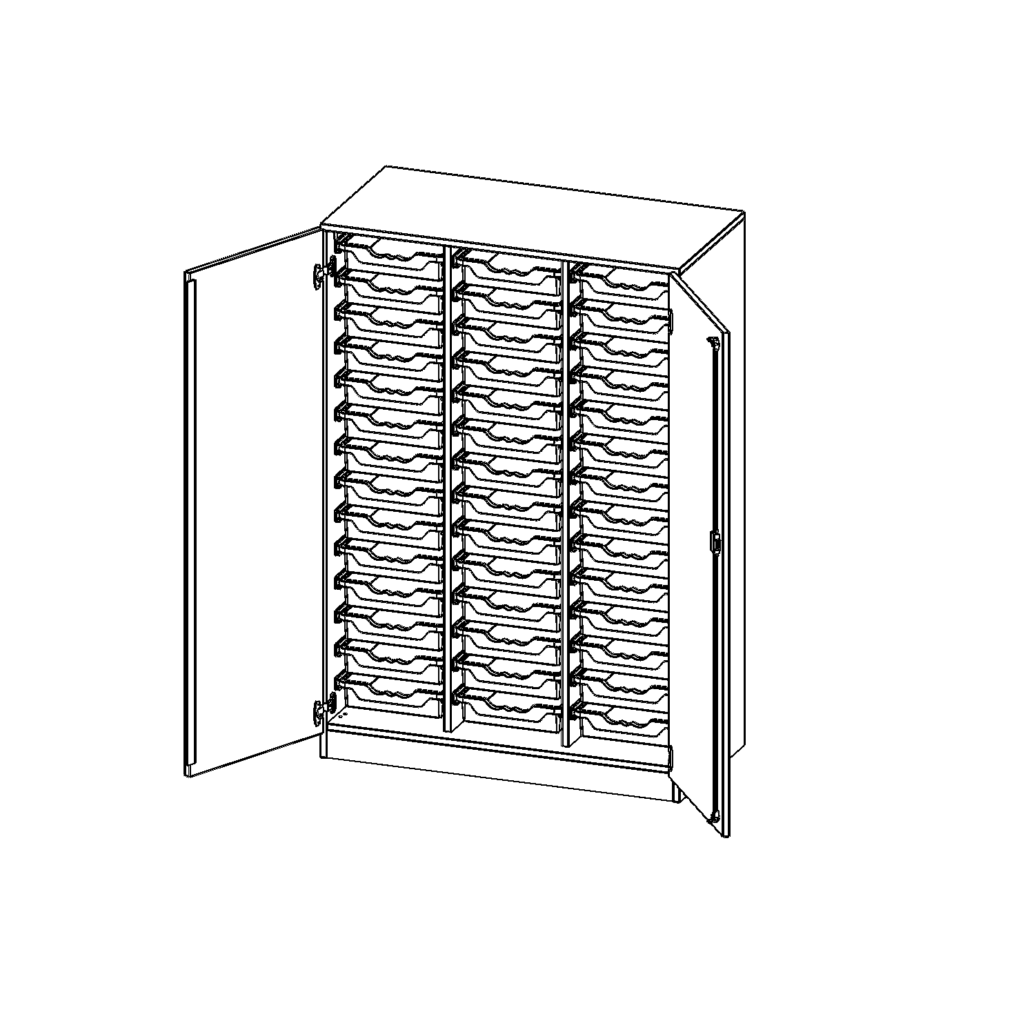 B/H/T: 104,5x154x50 cm, zweitürig, mit Sockel (81 mm), mit 42 flachen ErgoTray Boxen