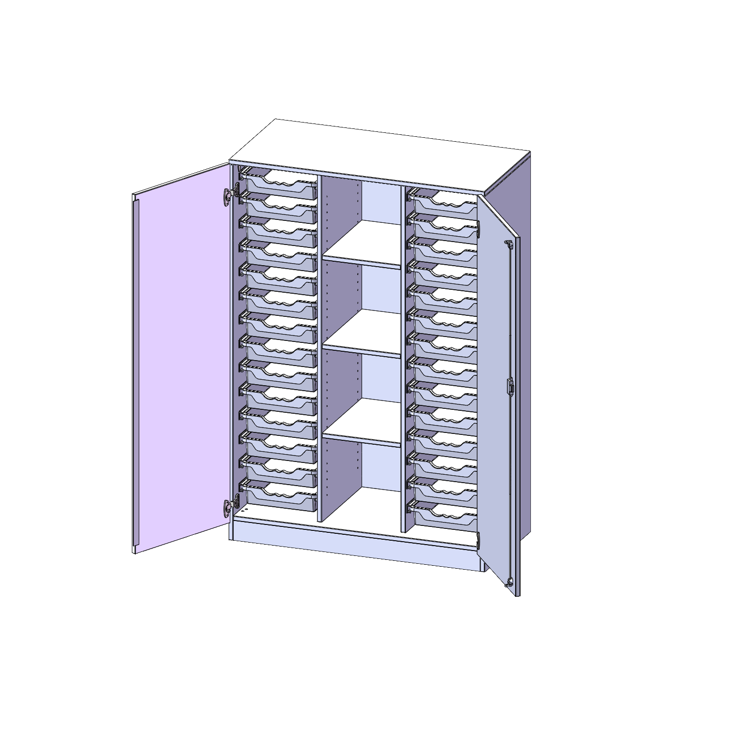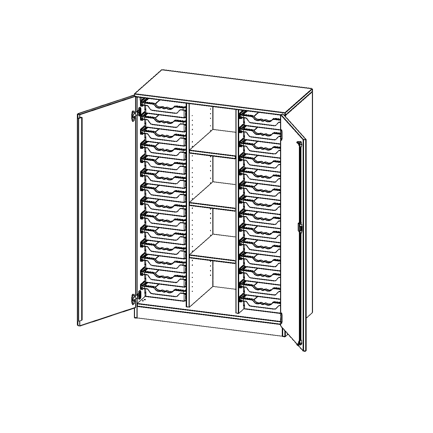 B/H/T: 104,5x154x50 cm, zweitürig, mit Sockel (81 mm), mit 28 flachen ErgoTray Boxen