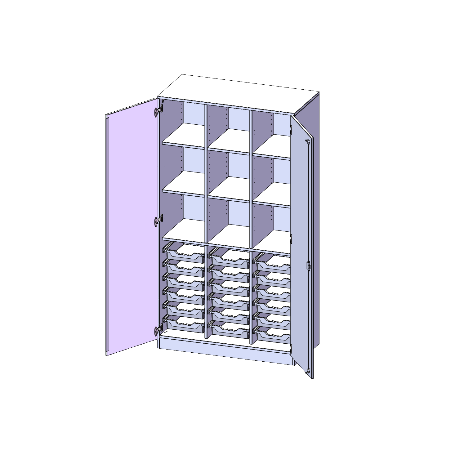 Alle Schränke werden aus melaminharzbeschichteter E1-Feinspanplatte gefertigt, die FSC zertifiziert und formaldehydfrei sind. Als Kanten verwenden wir besonders robuste 2 mm starke ABS Kanten, die unter hoher Temperatur fest verleimt werden. Bitte wählen Sie Ihr Wunschdekor aus unserer Dekorpalette aus. Die Einlegeböden sind im Raster von 32 mm verstellbar. Unsere hochwertigen Bodenträger verfügen über einen "Ausziehstop", so wird verhindert, dass Böden mit Inhalt darauf aus dem Regal oder Schrank rutschen können. Die Türen lassen sich dank 270° öffnender Scharniere an den Korpus anlegen. Sie sind mit einem Schloss verschließbar. An den Türen befindet sich eine Staublippe.