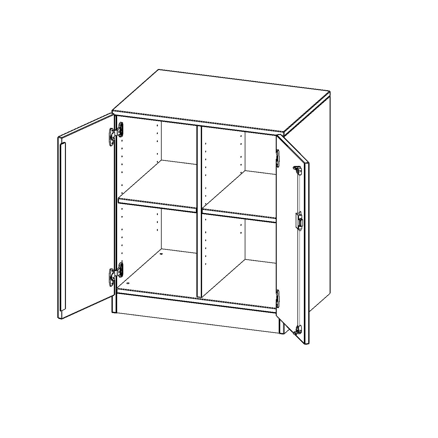 B/H/T: 70,3x82x50 cm, zweitürig, mit Sockel (81 mm), ohne Boxen