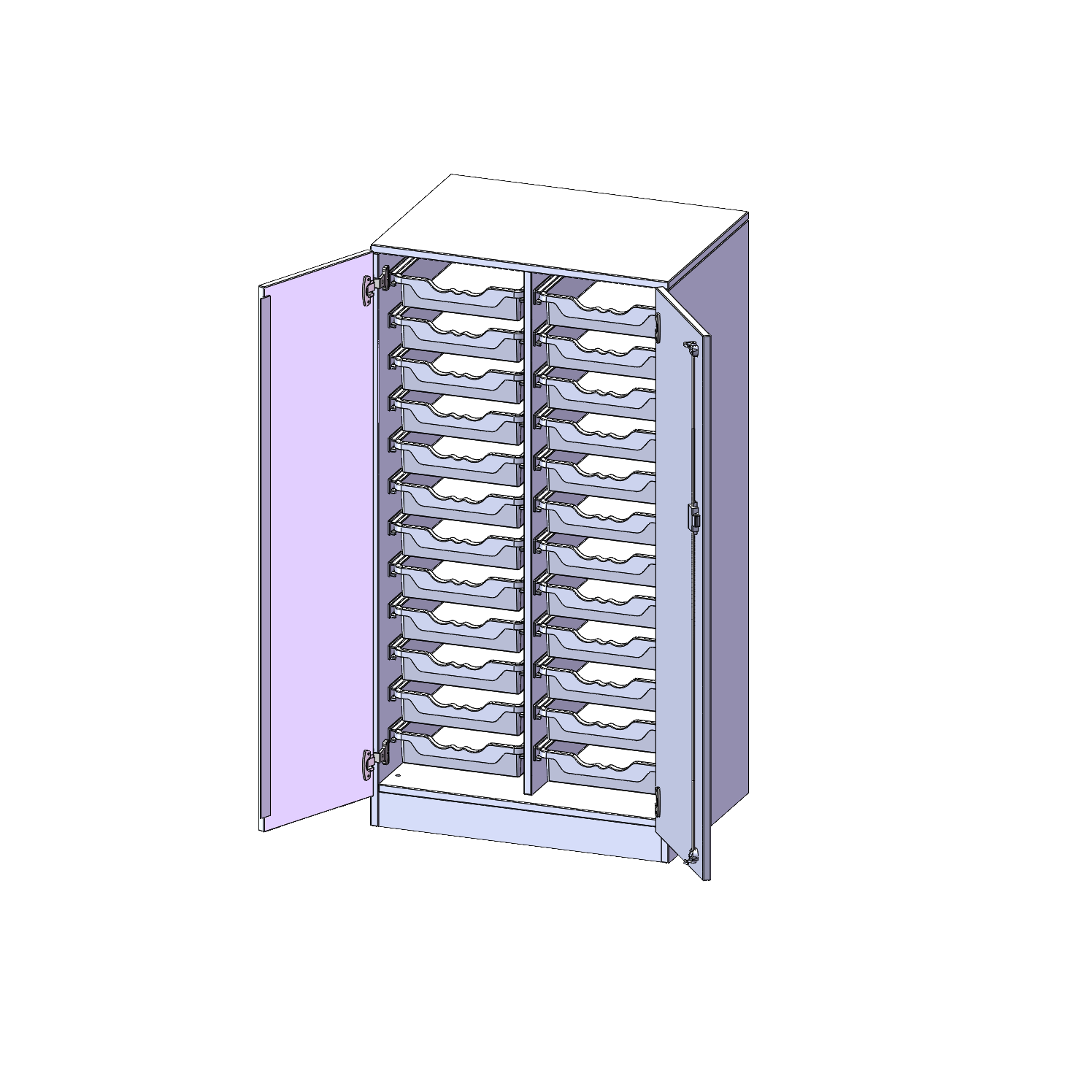 B/H/T: 70,3x136x50 cm, zweitürig, mit Sockel (81 mm), mit 24 flachen ErgoTray Boxen
