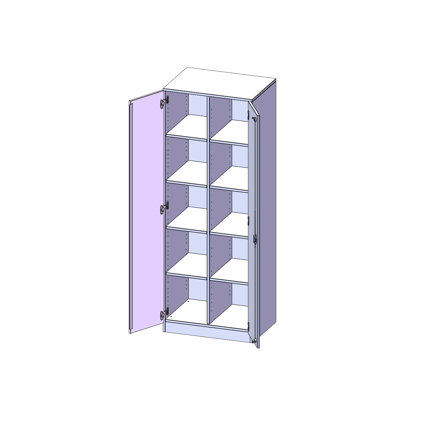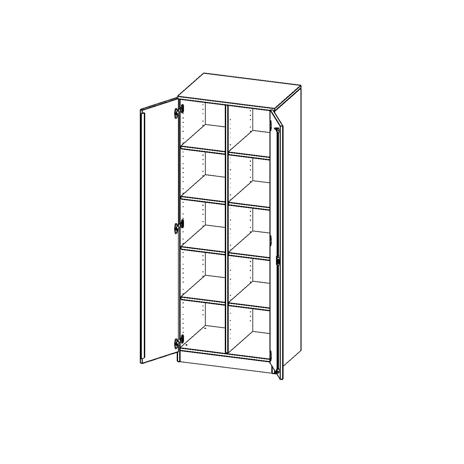 B/H/T: 70,3x190x50 cm, zweitürig, mit Sockel (81 mm), mit Mittelwand, ohne Boxen
