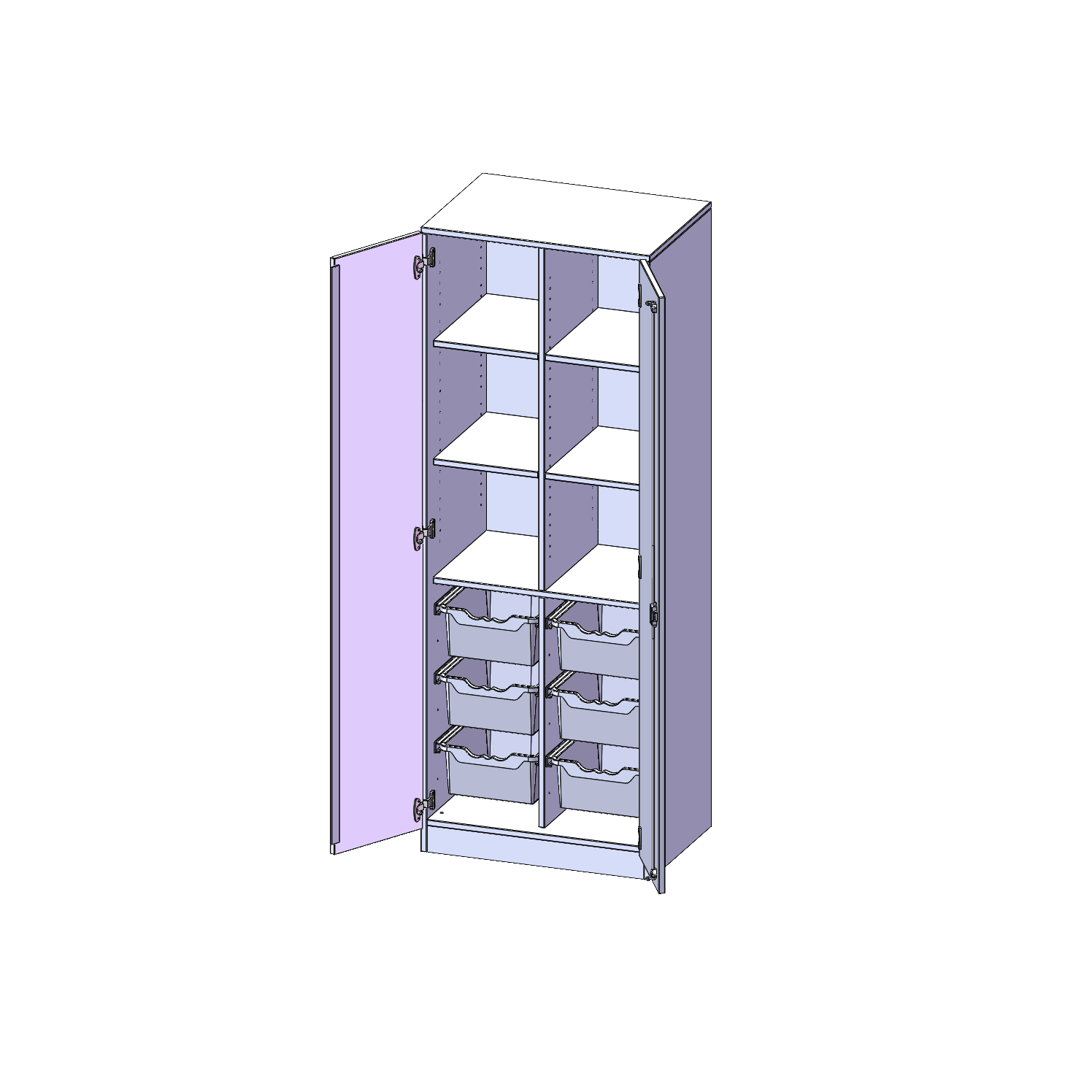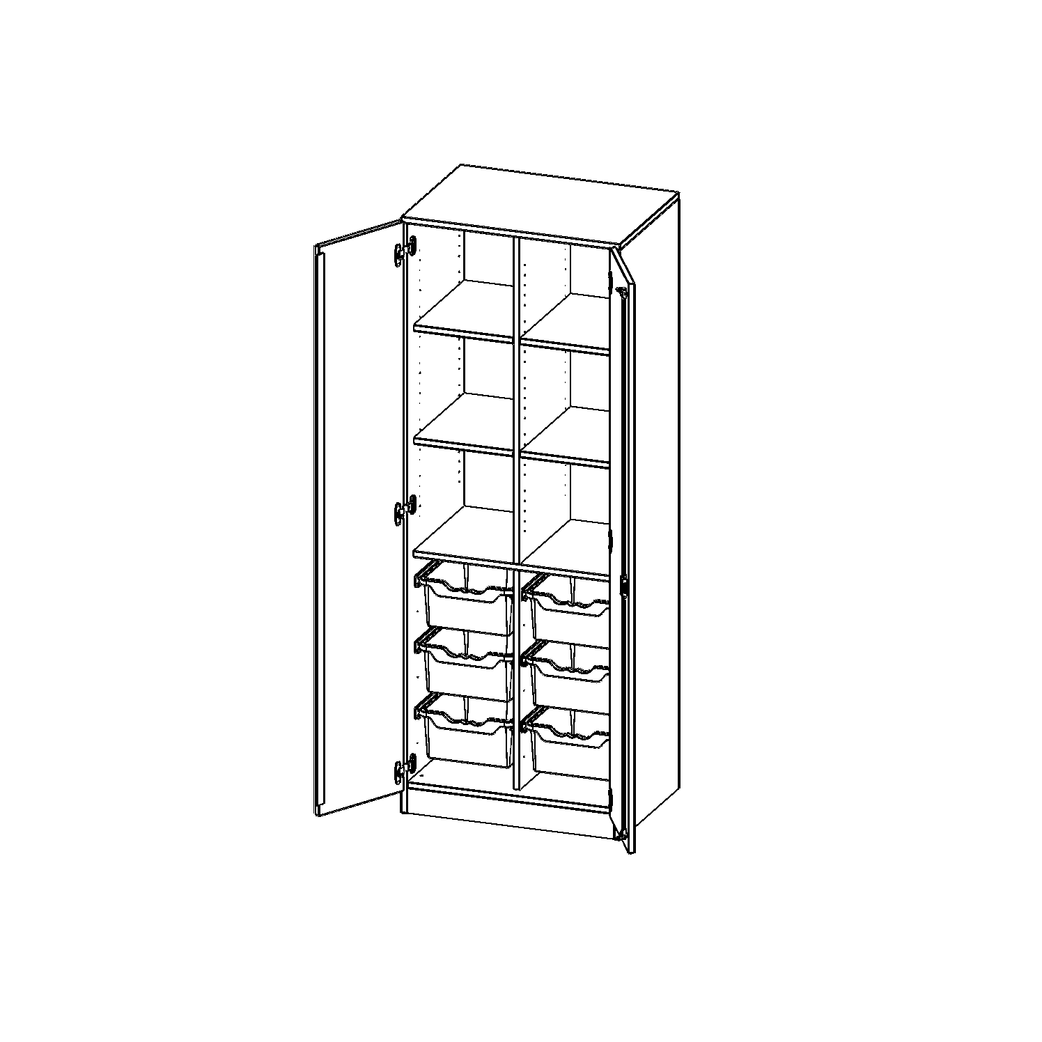 B/H/T: 70,3x190x50 cm, zweitürig, mit Sockel (81 mm), mit Mittelwand, mit 6 hohen ErgoTray Boxen