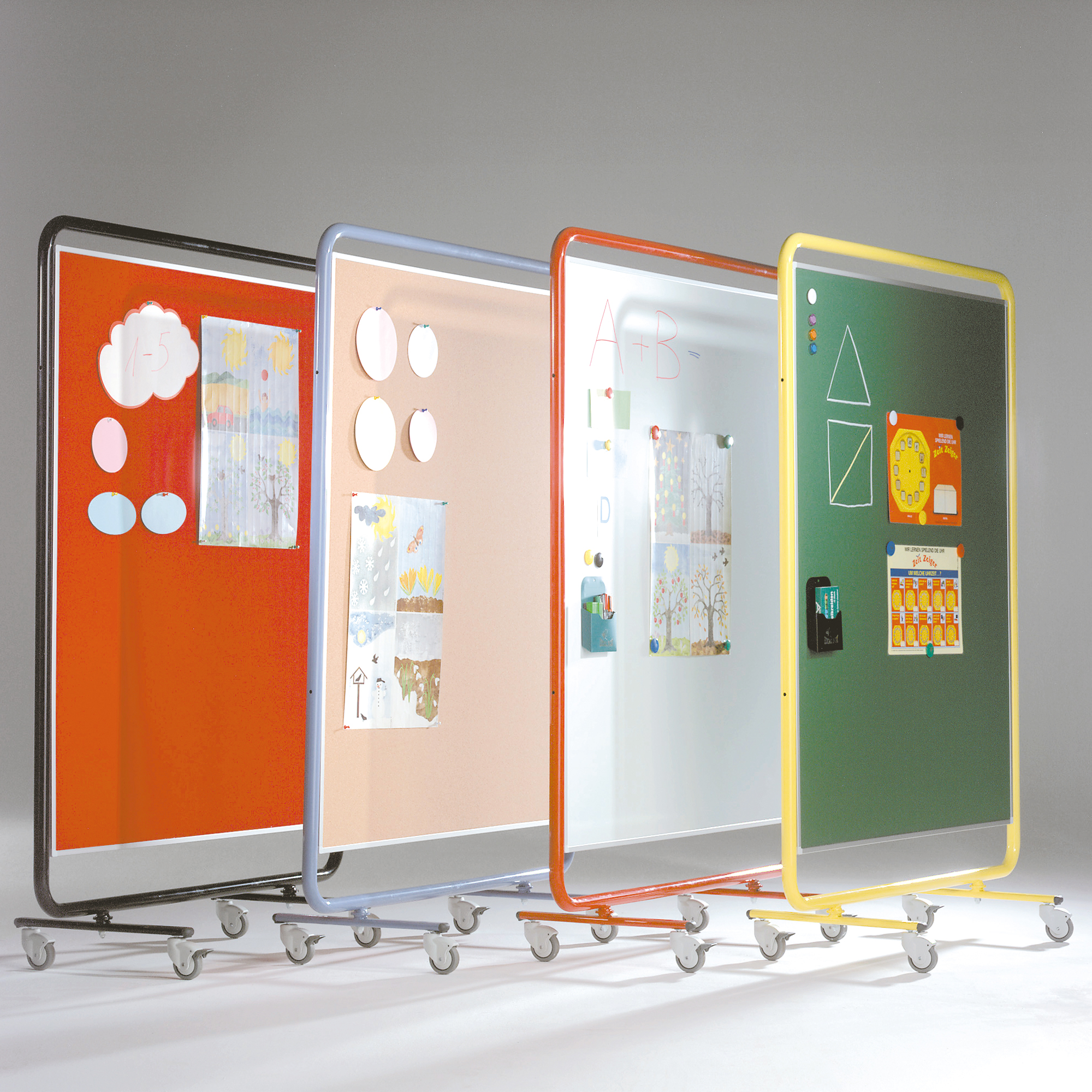 Die Oberfläche auf Vorder- und Rückseite ist mit Stoff bezogen und einfach pinnbar. Dank der 4 Rollen ist die Stellwand mobil einsetzbar und kann beliebig verschoben werden. Die RAL-Farbe sowohl als auch die Stofffarbe ist aus einem großen Sortiment frei wählbar.