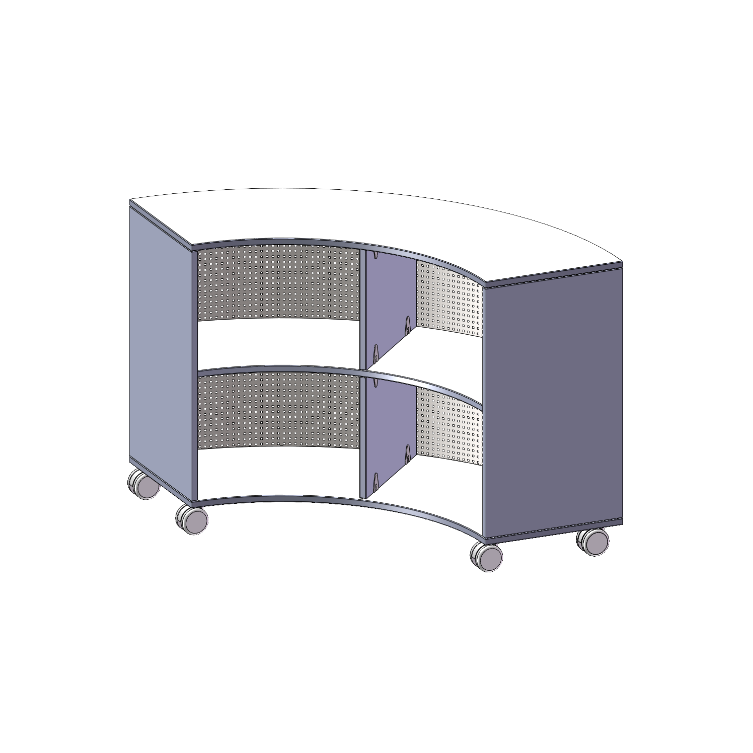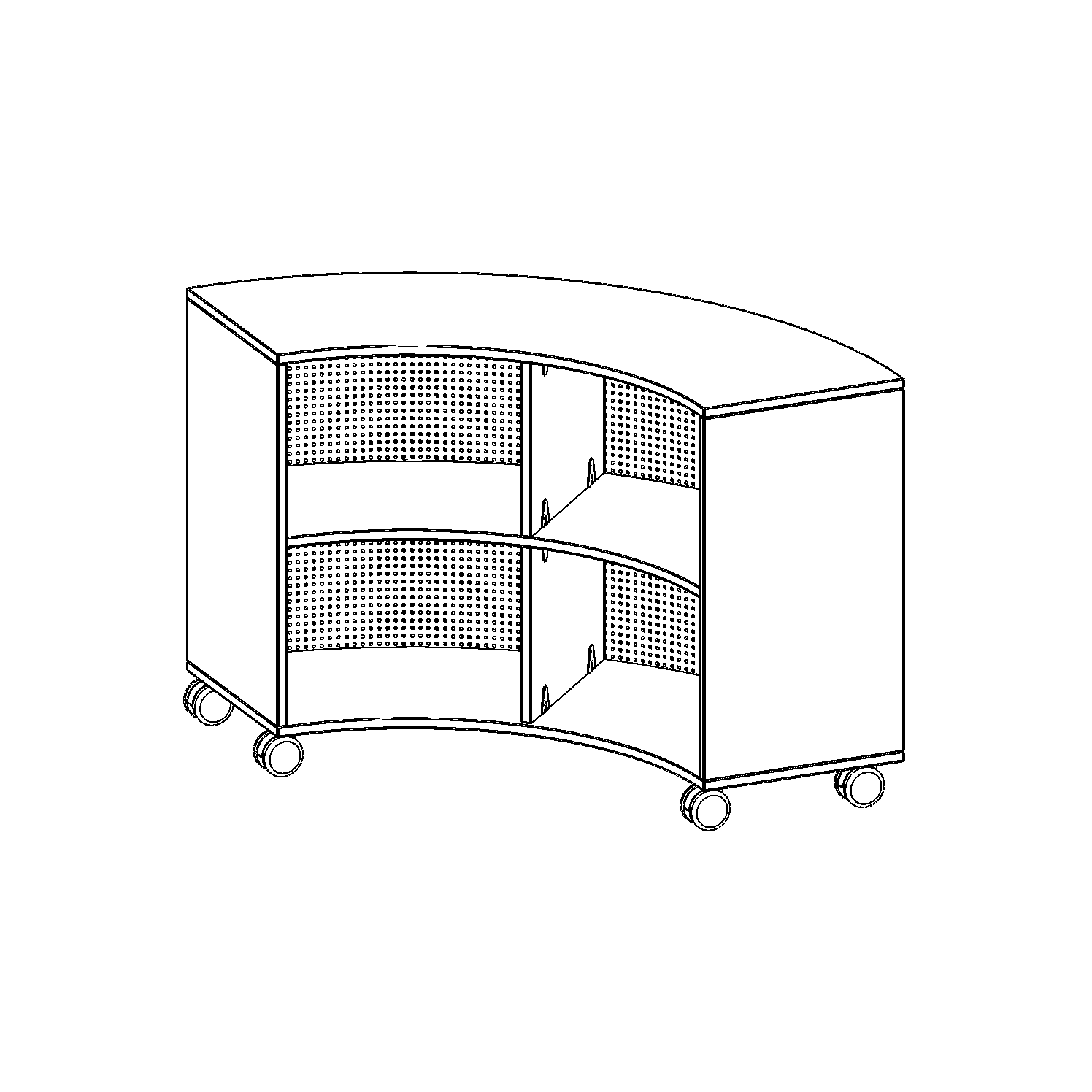 Die fahrbaren Viertel- & Sechstelkreisregale haben den Bogen raus! Mit ihrer Hilfe sind ganz besondere Regalkombinationen im Klassenzimmer oder in anderen Räumen möglich. Mit ihren 40 cm breiten Seiten lassen sie sich mit 40 cm tiefen Schränken und Regalen kombinieren. Die Rollen haben die selbe Höhe wie der Sockel aller anderen evo180 Schränke und Regale. Lassen Sie Ihrer Fantasie freien Lauf.