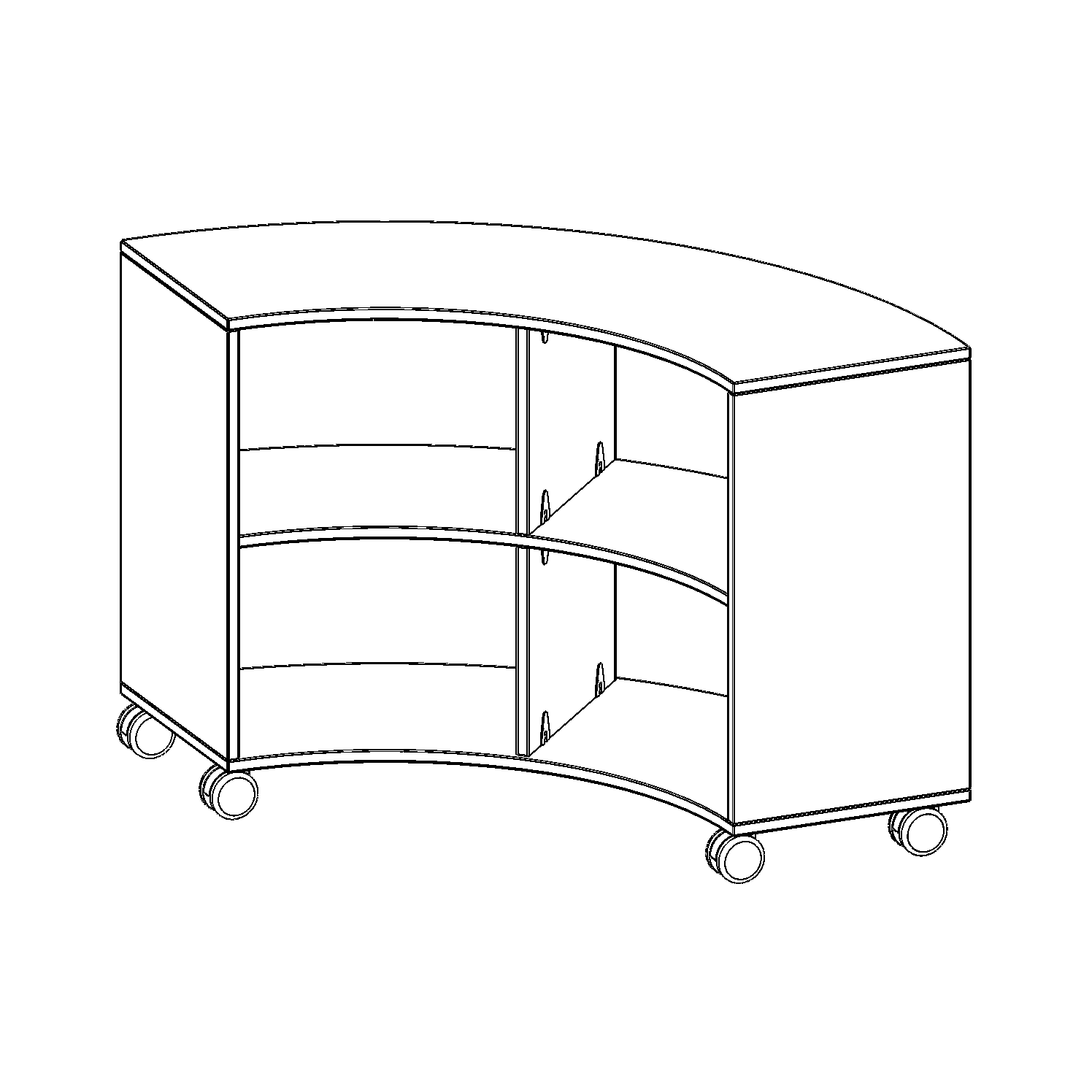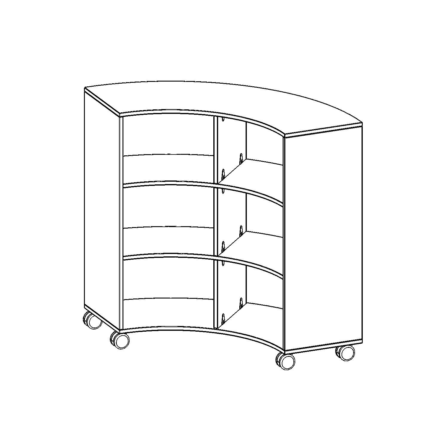 Die fahrbaren Viertel- & Sechstelkreisregale haben den Bogen raus! Mit ihrer Hilfe sind ganz besondere Regalkombinationen im Klassenzimmer oder in anderen Räumen möglich. Mit ihren 40 cm breiten Seiten lassen sie sich mit 40 cm tiefen Schränken und Regalen kombinieren. Die Rollen haben die selbe Höhe wie der Sockel aller anderen evo180 Schränke und Regale. Lassen Sie Ihrer Fantasie freien Lauf.